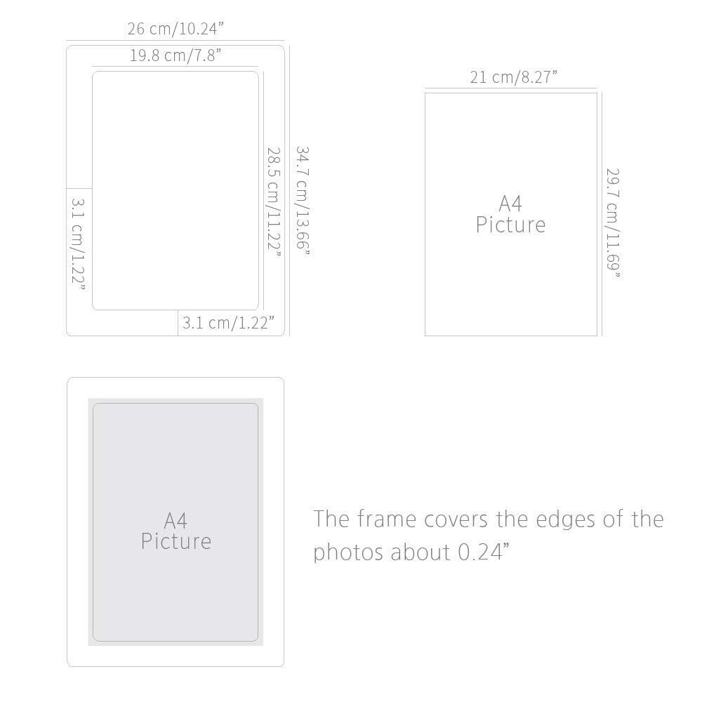 フレームに入る写真の大きさは21cmx29.7cmのA4サイズの写真です。