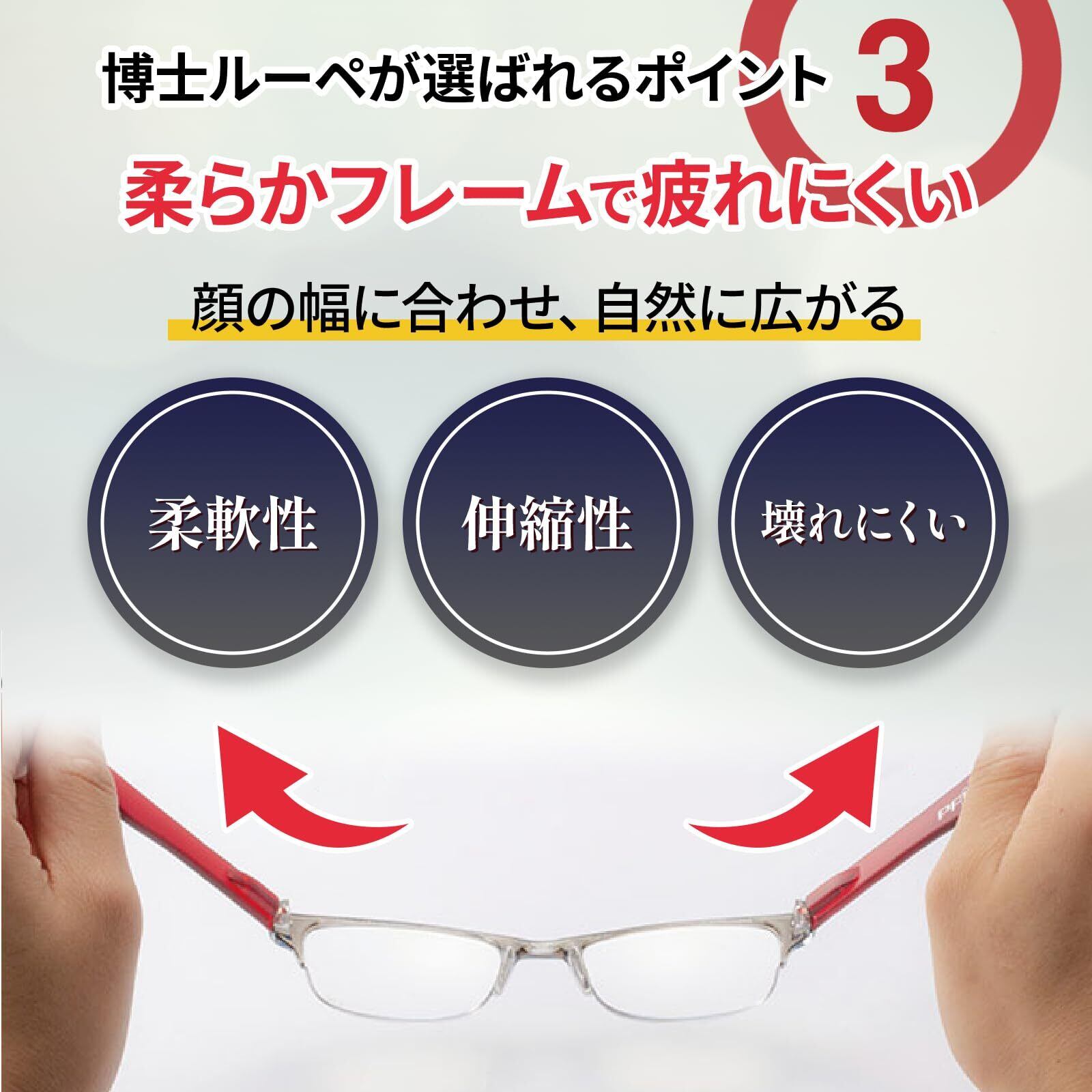 【 博士ルーペ 約2.0倍 グレーデミ 】 株式会社ファーマフーズ 拡大鏡 メガネ ルーペ 軽量 ソフトフレーム 専用ケース付 21g 伸縮性 耐久性 シリアルナンバー付