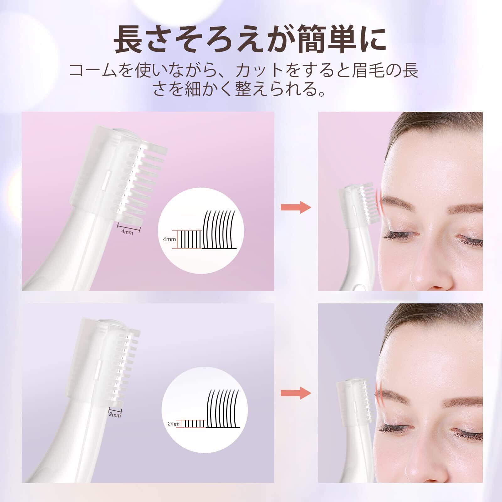 【一本多用】これ一本で眉毛を綺麗に整えるの他、顔のうぶ毛、耳のつけね、髪の生え際、もみあげ、えり足、口周り、手、指、脇などの無駄毛をカットできます。