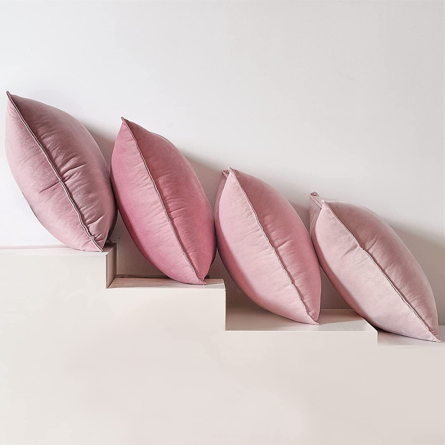 Topfinel クッションカバー 60×60cm 4枚セット グラデーション おしゃれ 北欧 ベルベット 洗える 無地 ピンク