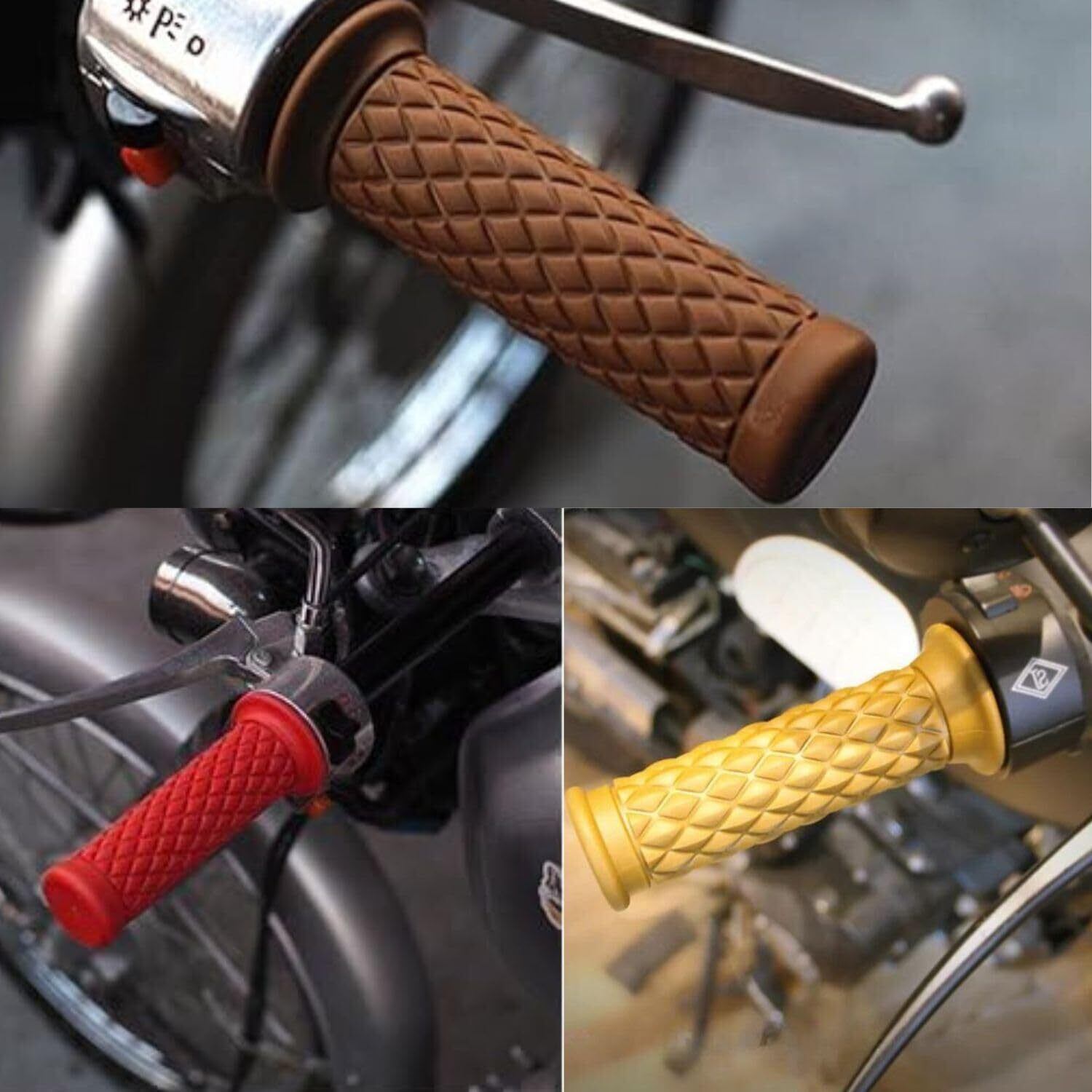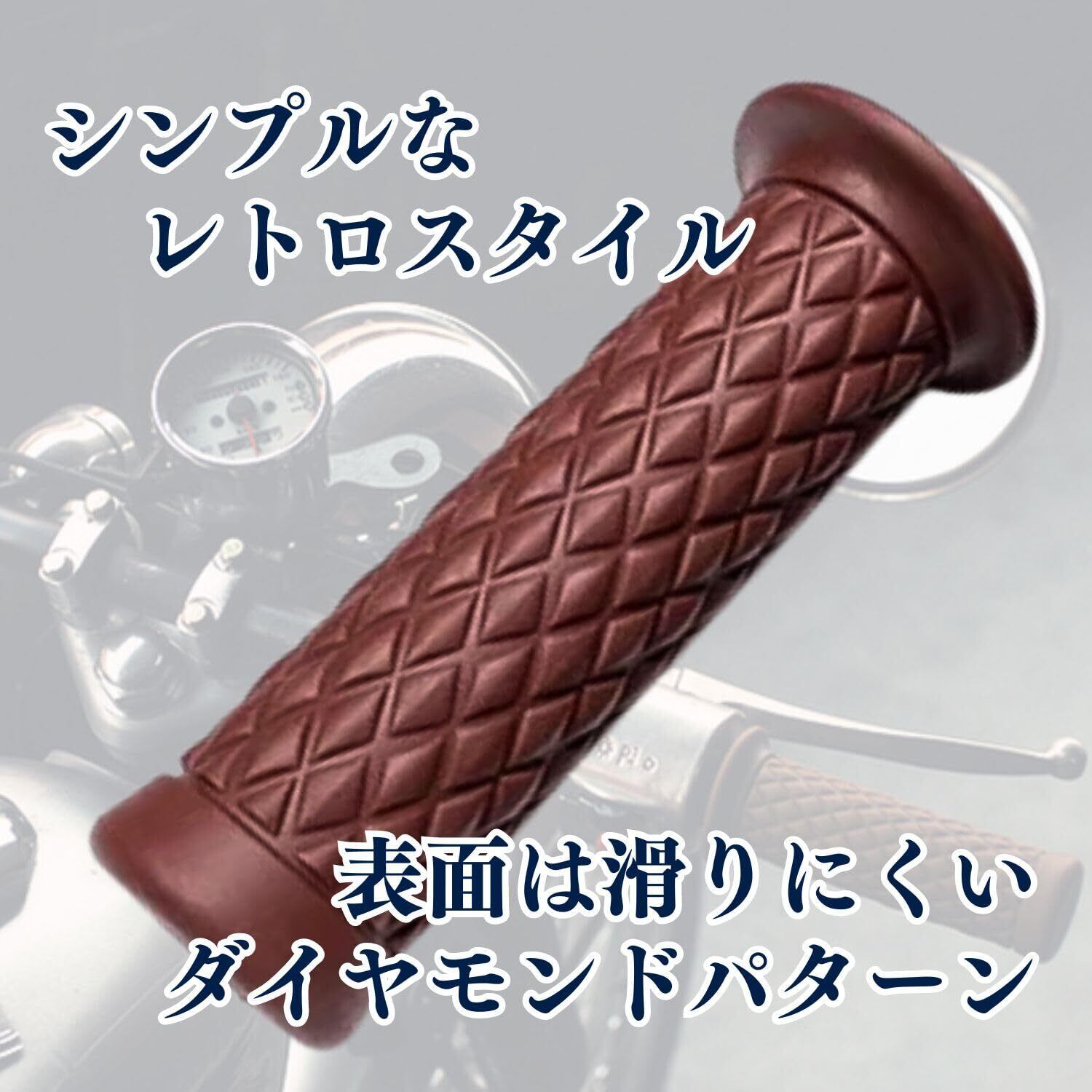 MSMint ハンドルグリップ 22.2mm ダイヤモンドパターン バイク 汎用 グリップ 左右セット ダイヤ レトロ 非貫通 ハンドル グリップ