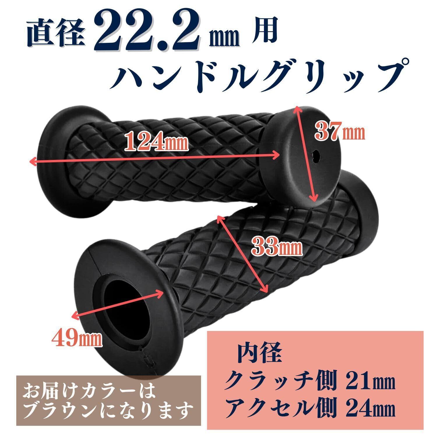 直径22.2ミリのバイク用ハンドルに取り付け可能なゴム製ハンドルグリップ。クラッチ側とアクセル側の左右セットで、車種を問わない汎用タイプになります。