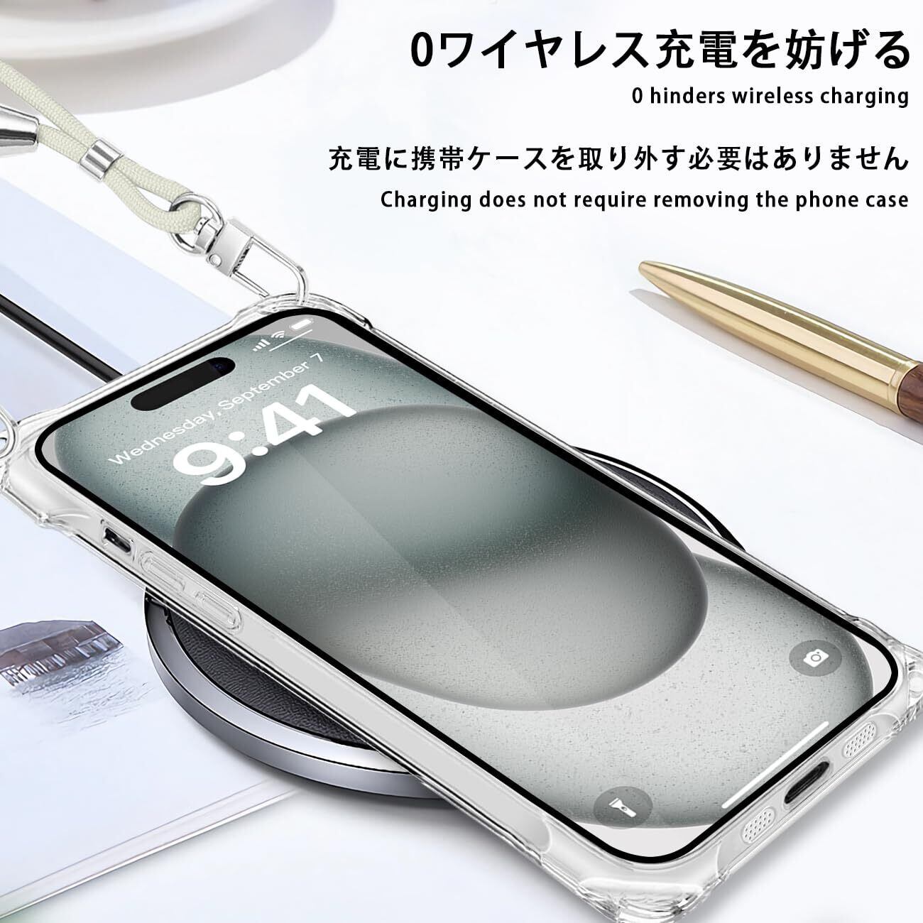 【在庫処分】danliangqifei iPhone 15 ケース クリア 肩掛け斜めかけ 首掛け縄掛け アイフォン 15 スマホケース ショルダー 透明 バンパーカバー 耐衝撃 ワイヤレス充電対応 斜めがけ 縄掛け 長さ調整可能 薄型 落下防止 縦/横 紛失防止 可愛い (ホワイト)