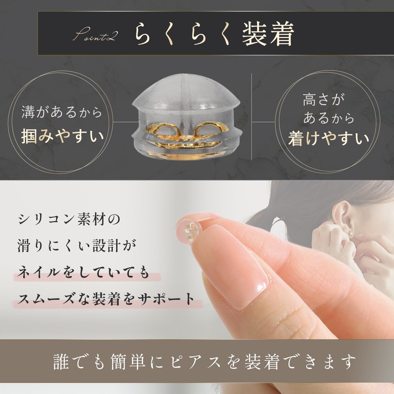 【柔軟なシリコン素材】ピアスをしっかり固定し、外れにくい設計