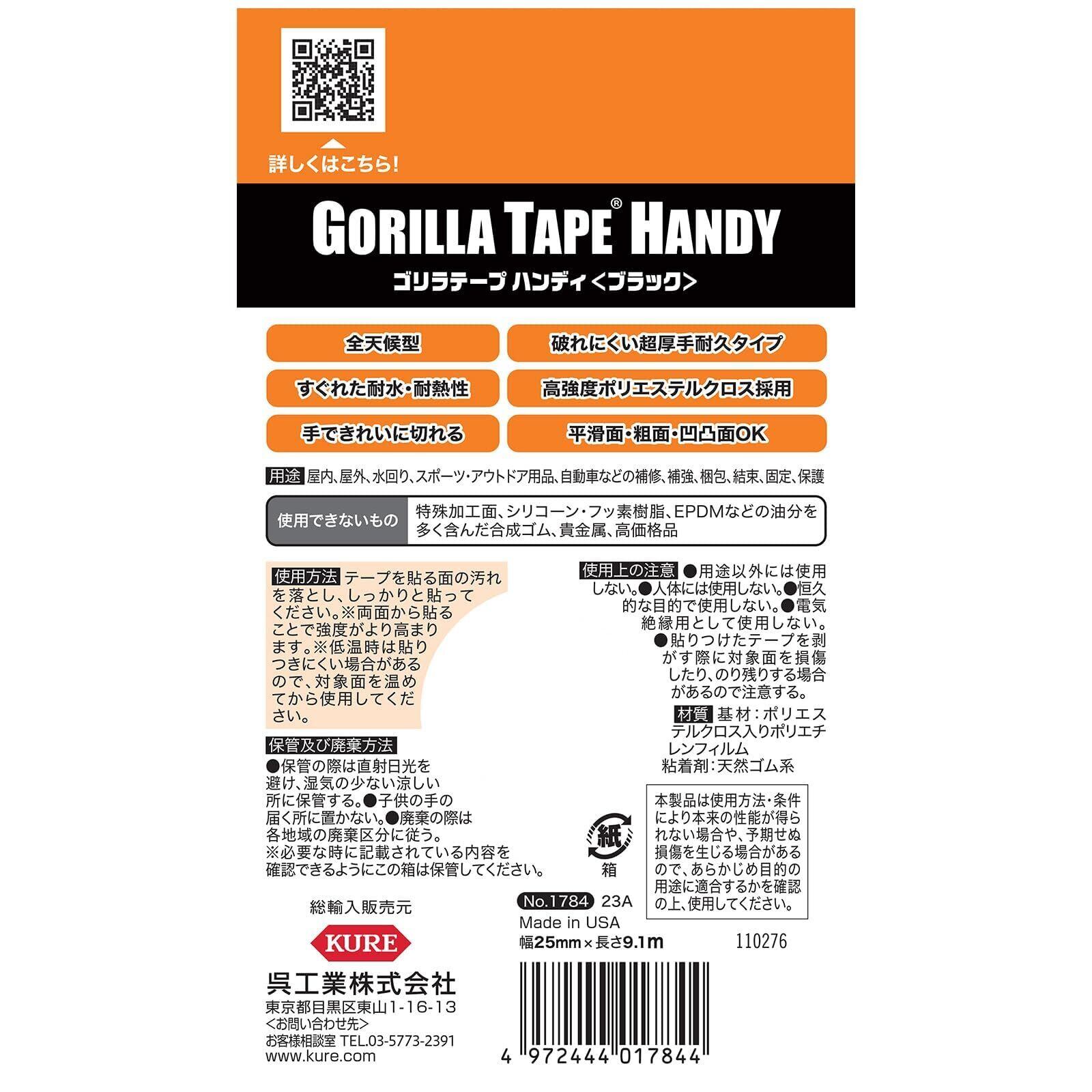 【数量限定】KURE(呉工業) ゴリラテープ ハンディブラック 25mm×9.1m 強力補修テープ 1784