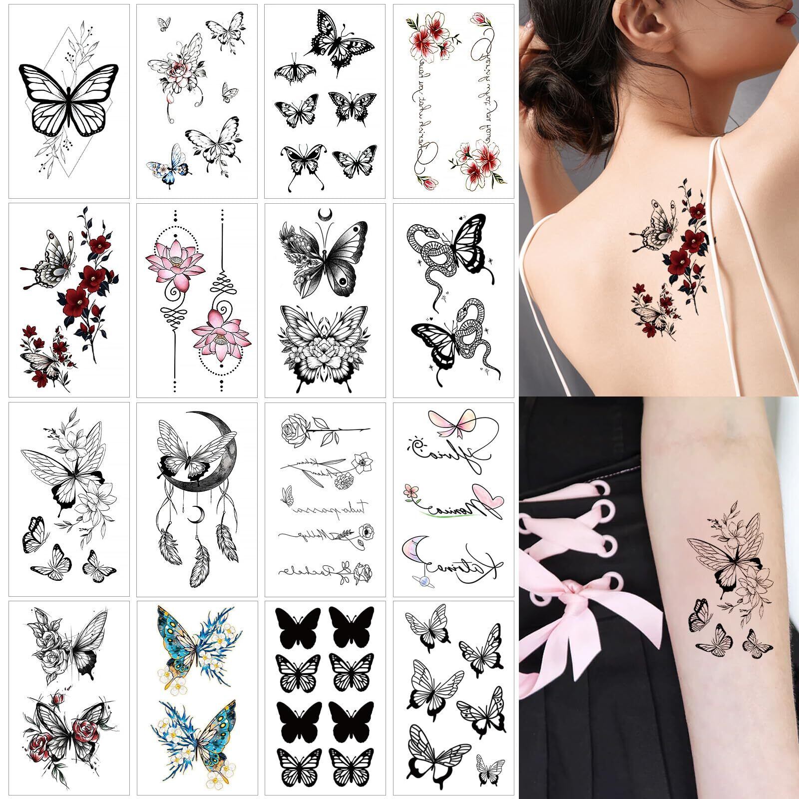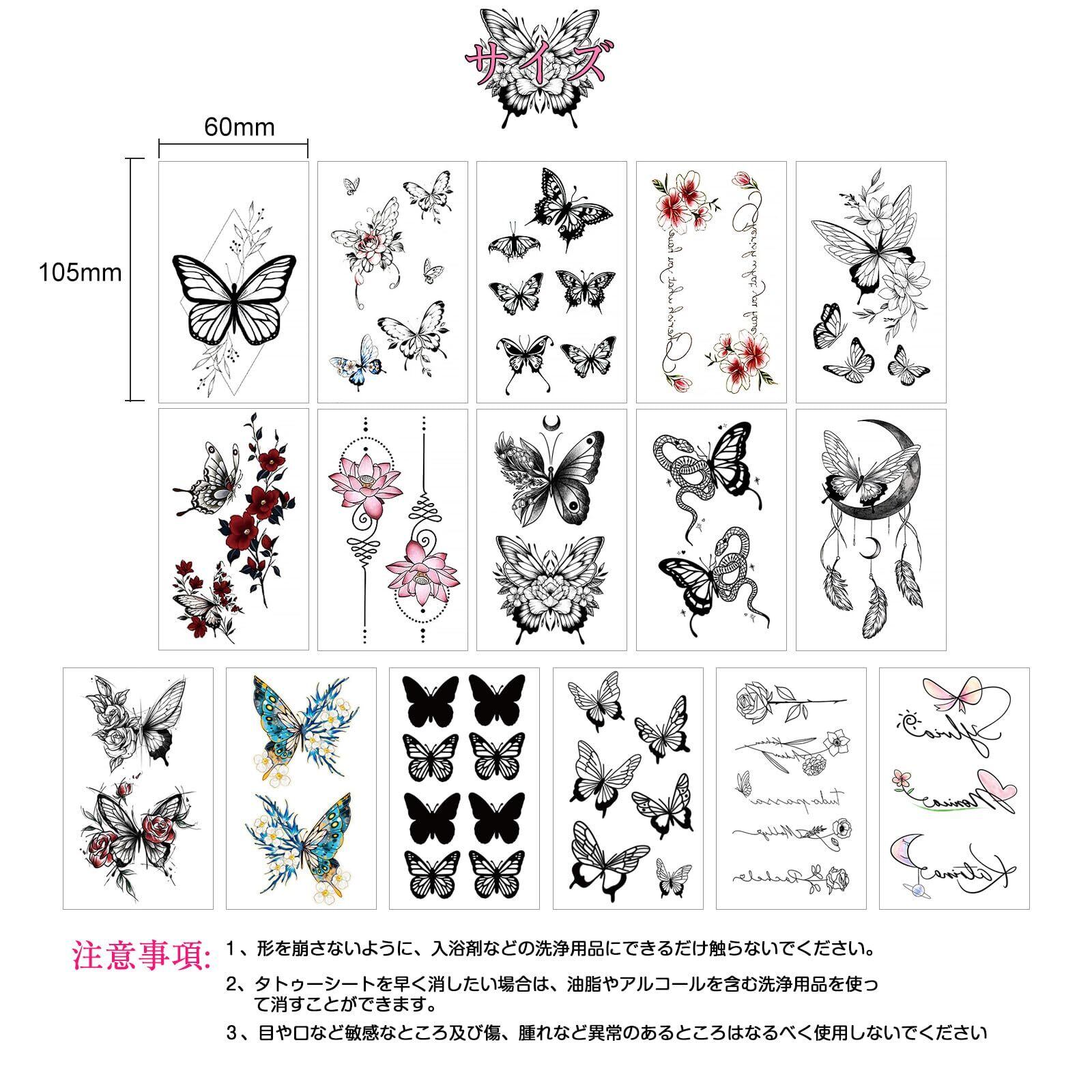 mefeny タトゥーシール 入れ墨シール 蝶 花 薔薇 蛇 刺青シール 16枚セット 夏 かわいい おしゃれ 剥がせる 長持ち レディース 祭り 誕生日