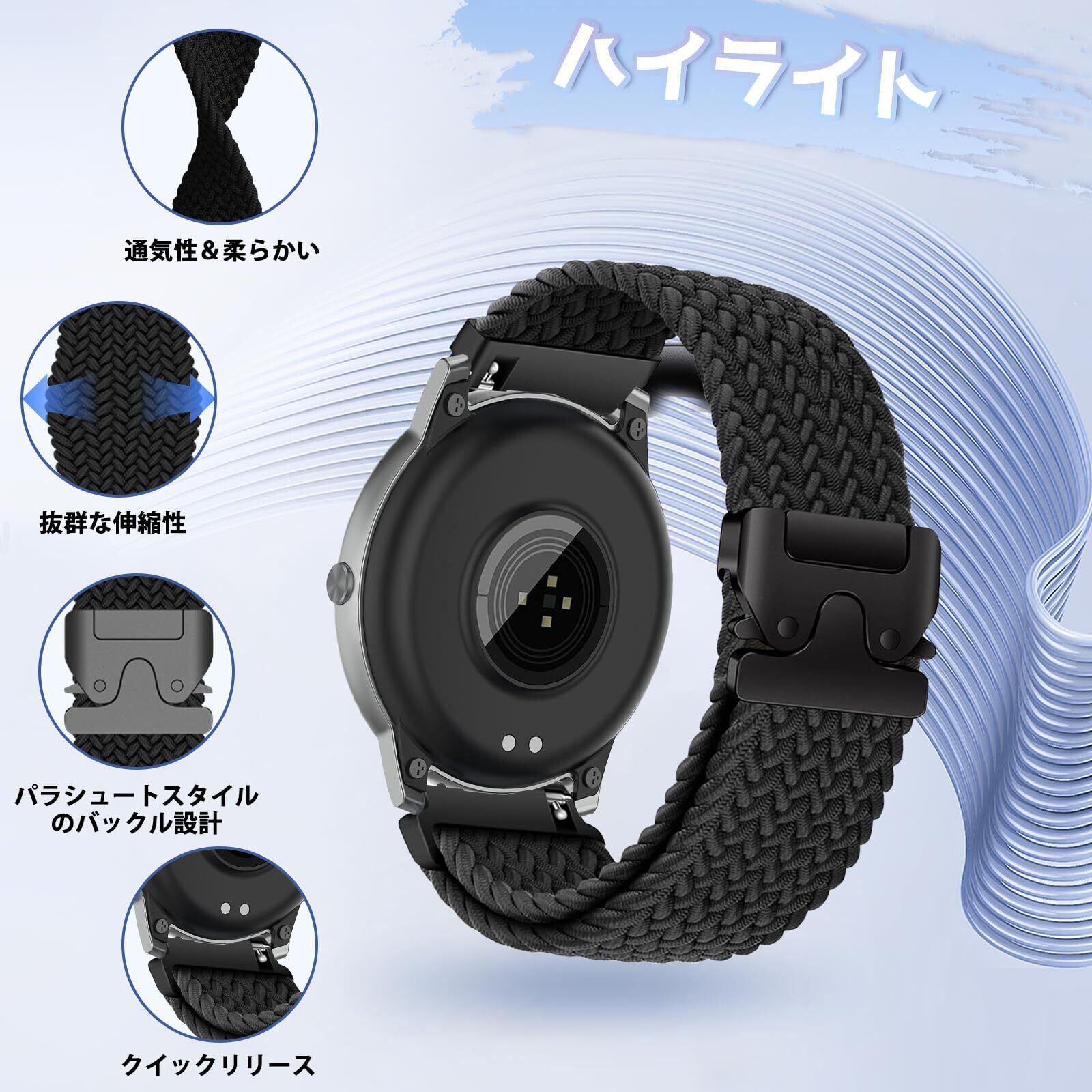 [RanBluu] 22mm 20mm バンド 交換バンド 22ミリ 20ミリ スマートウォッチ 交換ベルト 替えベルト 時計バンド 伸縮性 ストラップ ナイロン 編み込み スポーツバンド 通気性 クイックリリース (22 mm, ブラック)
