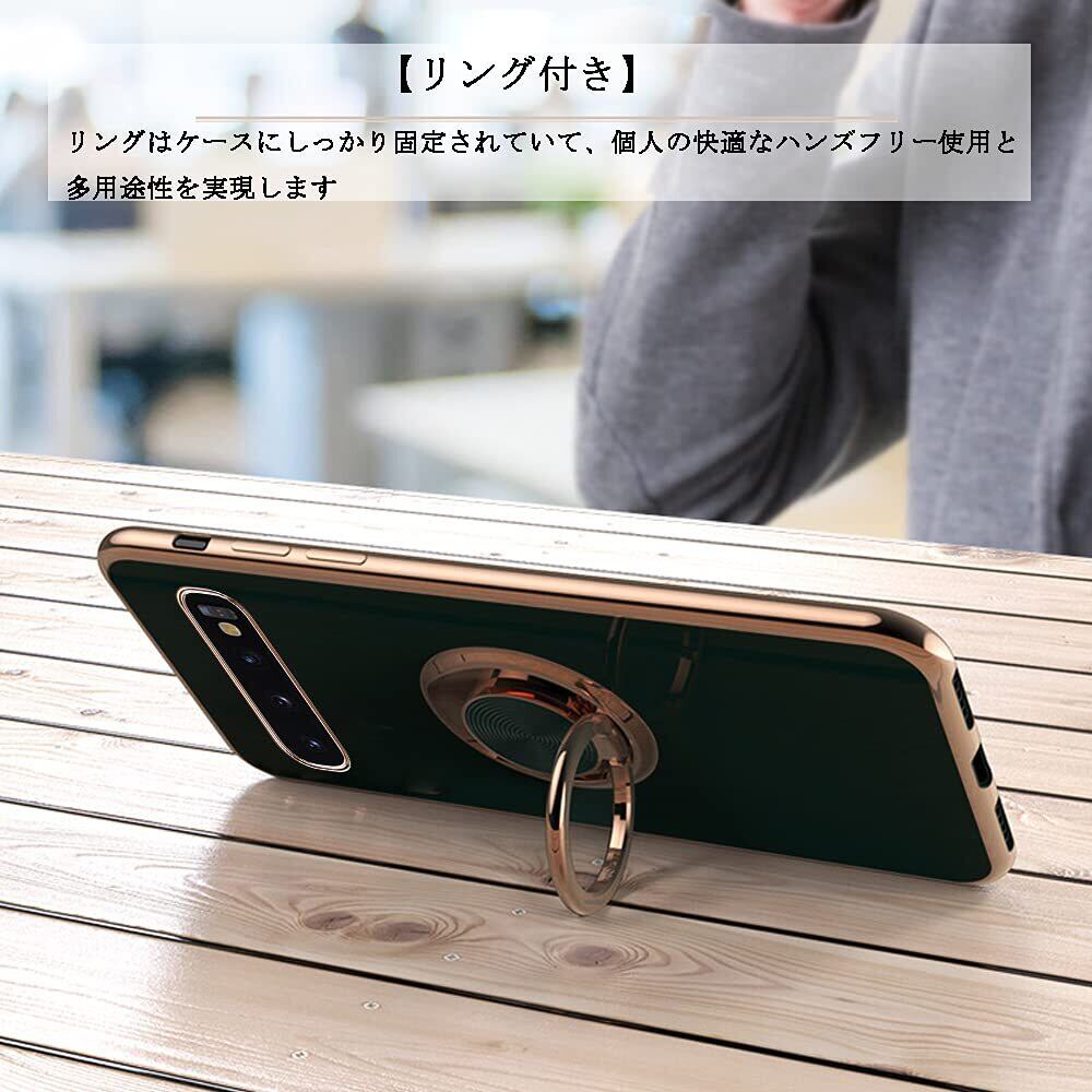 JOOBOY Galaxy s10 用 ケース SC-03L SCV41 ケース リング付き メッキ加工 レンズ保護 tpu ソフト ストラップホール付き 耐衝撃 スリム おしゃれ スマホケース 携帯カバー ギャラクシーS10 用 カバー (Galaxy S10 4G, ブラック)