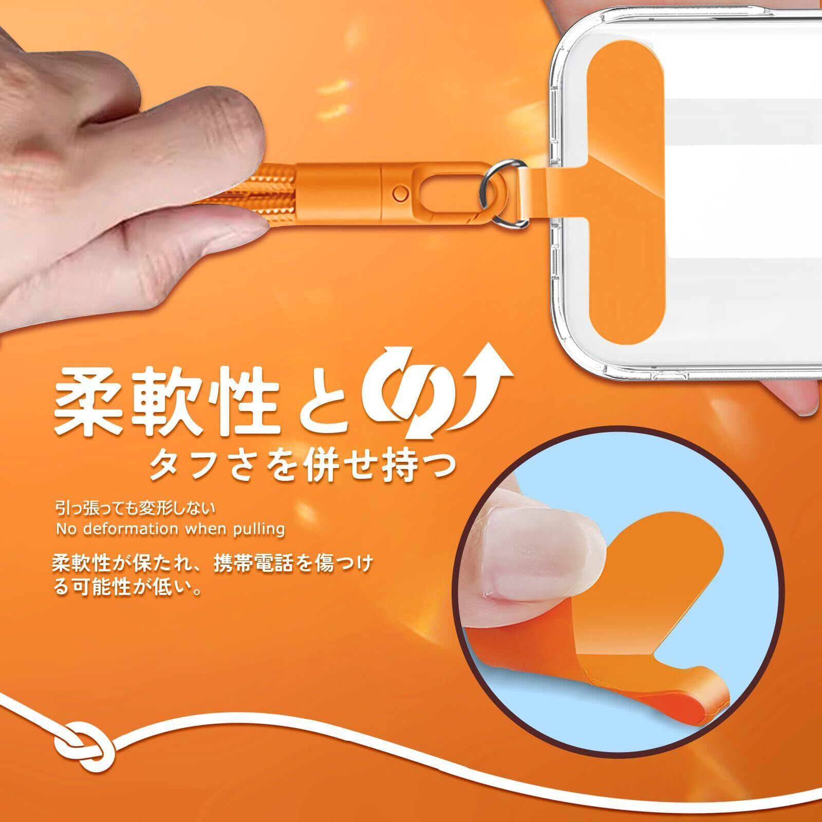・【取り付け簡単&紛失防止】工具不要でセットできる携帯ストラップです。スマホケースとスマホで付属のホルダーを挟むだけ!★お使いのスマホケースにストラップホールがなくても心配ありません。