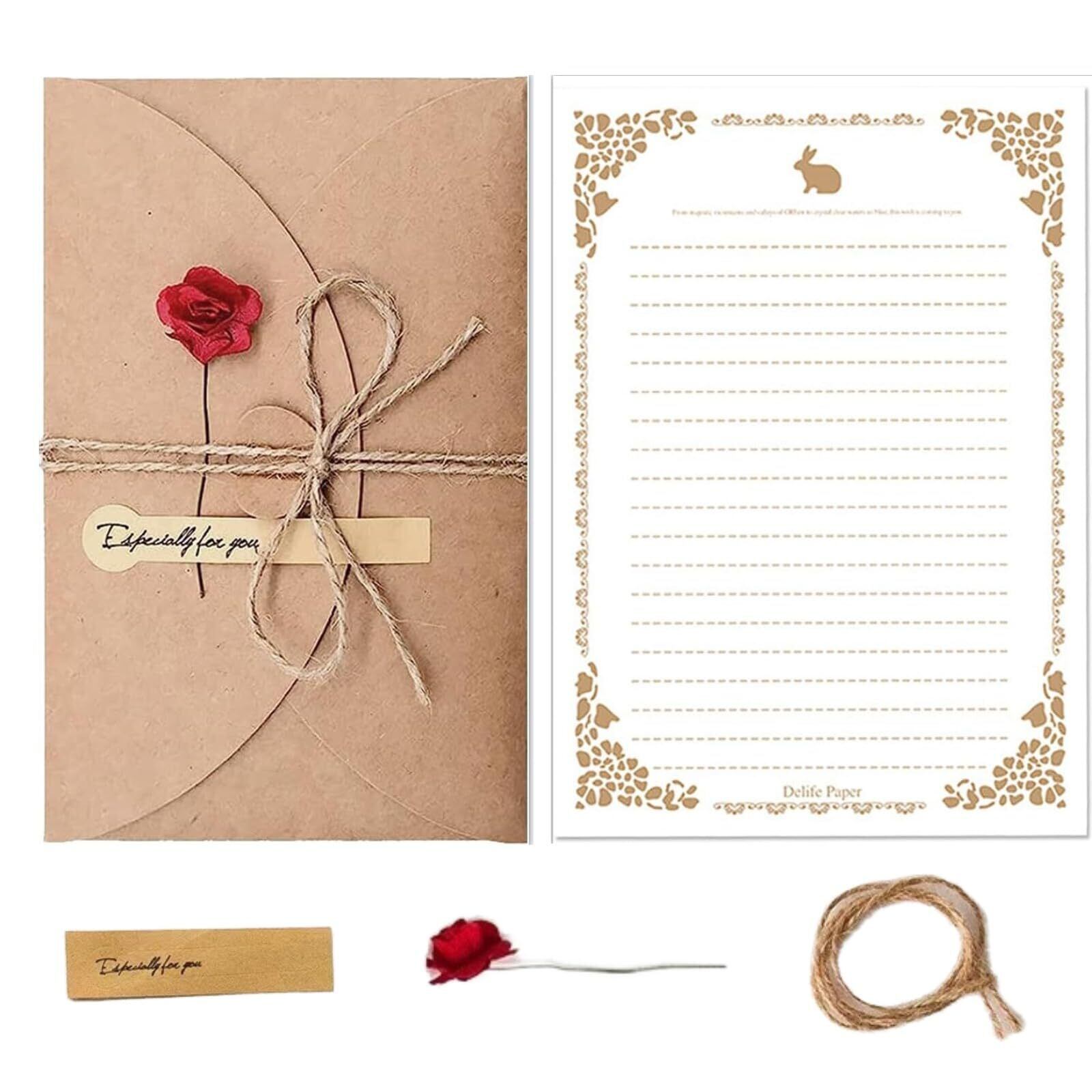 aninako 【封筒10枚+便箋10枚】 手紙セット レターセット 手紙 誕生日 彼女 便箋 おしゃれ プロポーズ アンティーク調 シンプル 箔押し 便箋と封筒 誕生日 招待状 結婚式 お祝い手紙 挨拶状 お礼状用 (干し花封筒10枚+便箋10枚)