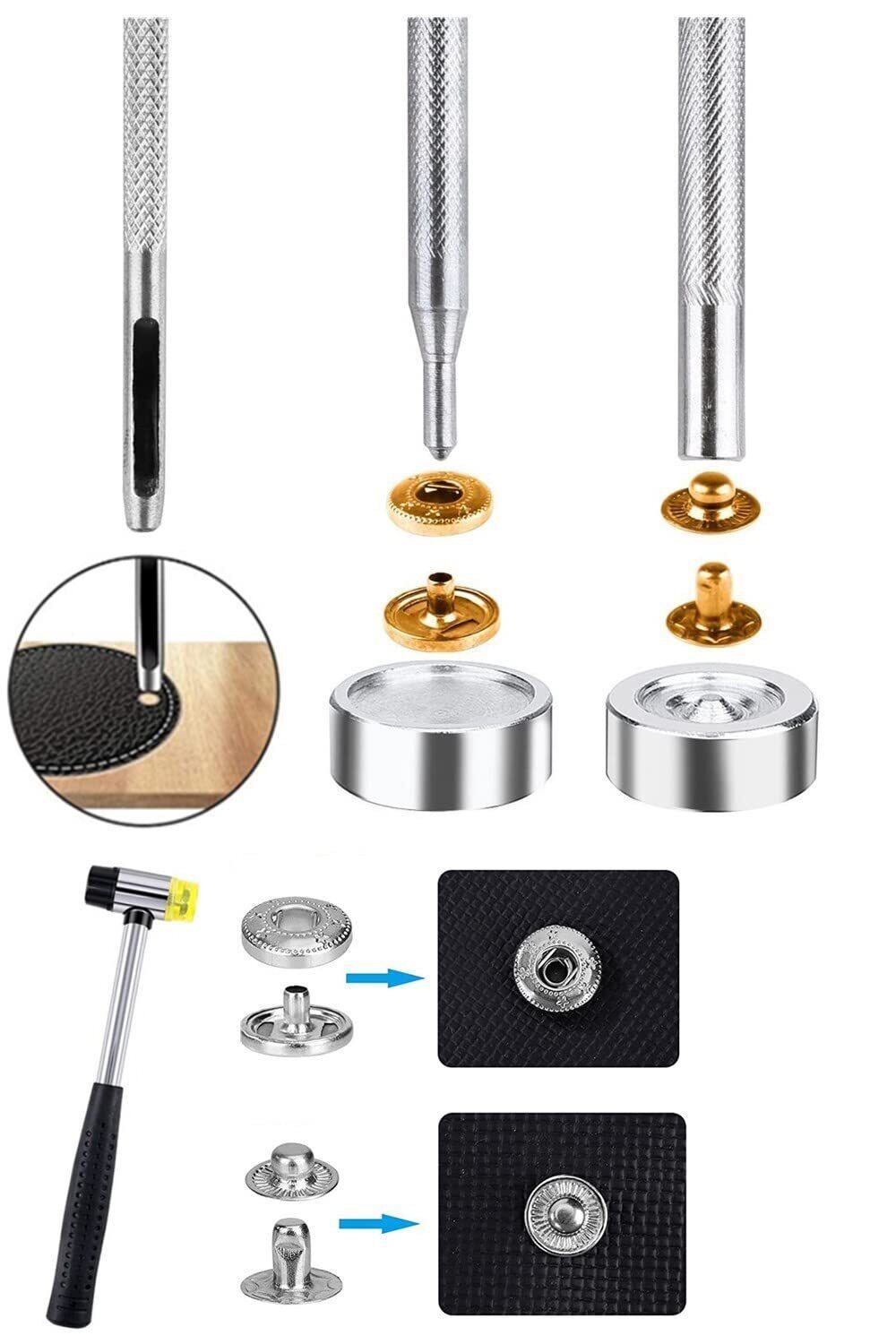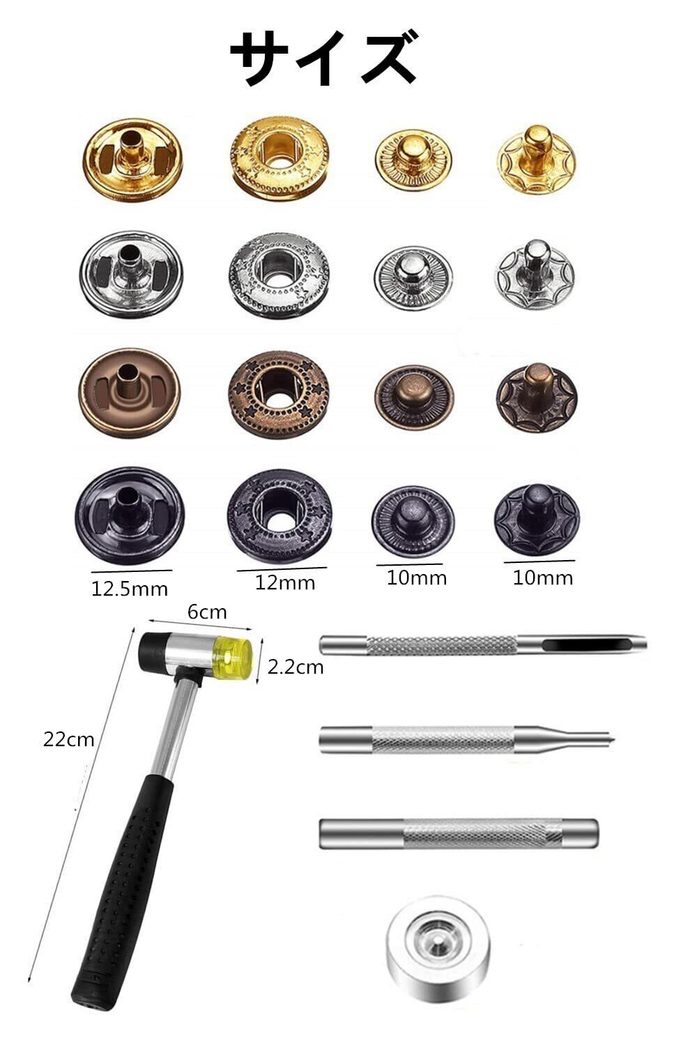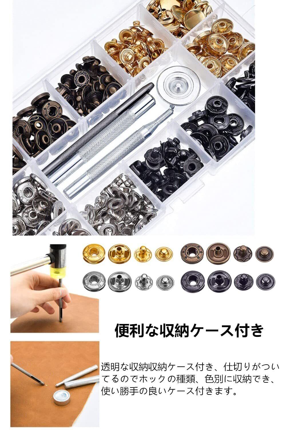 YFFSFDC レザークラフト カシメセット 4種類&ホック 4色 詰め合わせ ホック打ち工具 パーツ 120組 DIY 手作り ハンドメイド 布革細工 靴 ジーンズカバン アクセサリー 収納ケース付き ゴム槌付き