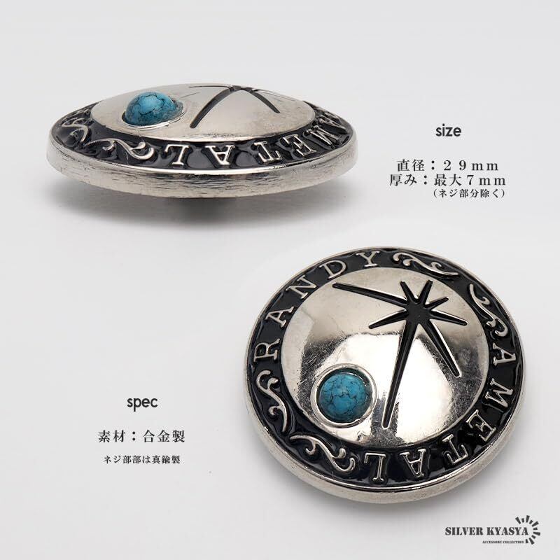 【特価商品】[silver KYASYA]太陽神 ネイティブ コンチョ ネジ式 ターコイズ 財布 ウォレット 飾りボタン スマホケース レザー ハンドメイド カスタム パーツ