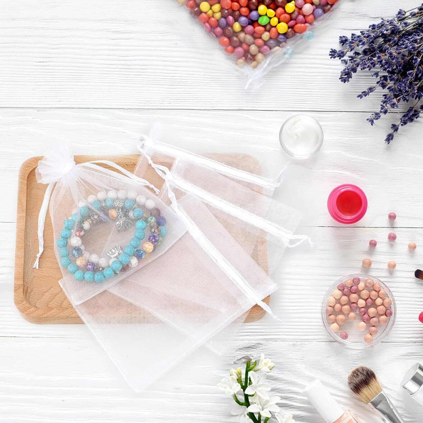 Nannlia 50枚 オーガンジー 巾着袋 7*9cm 小 ラッピング 袋 透明 プレゼント用 プレゼント 袋 小分け袋 無地 サシェ 袋 プチギフト 結婚式 誕生日 母の日