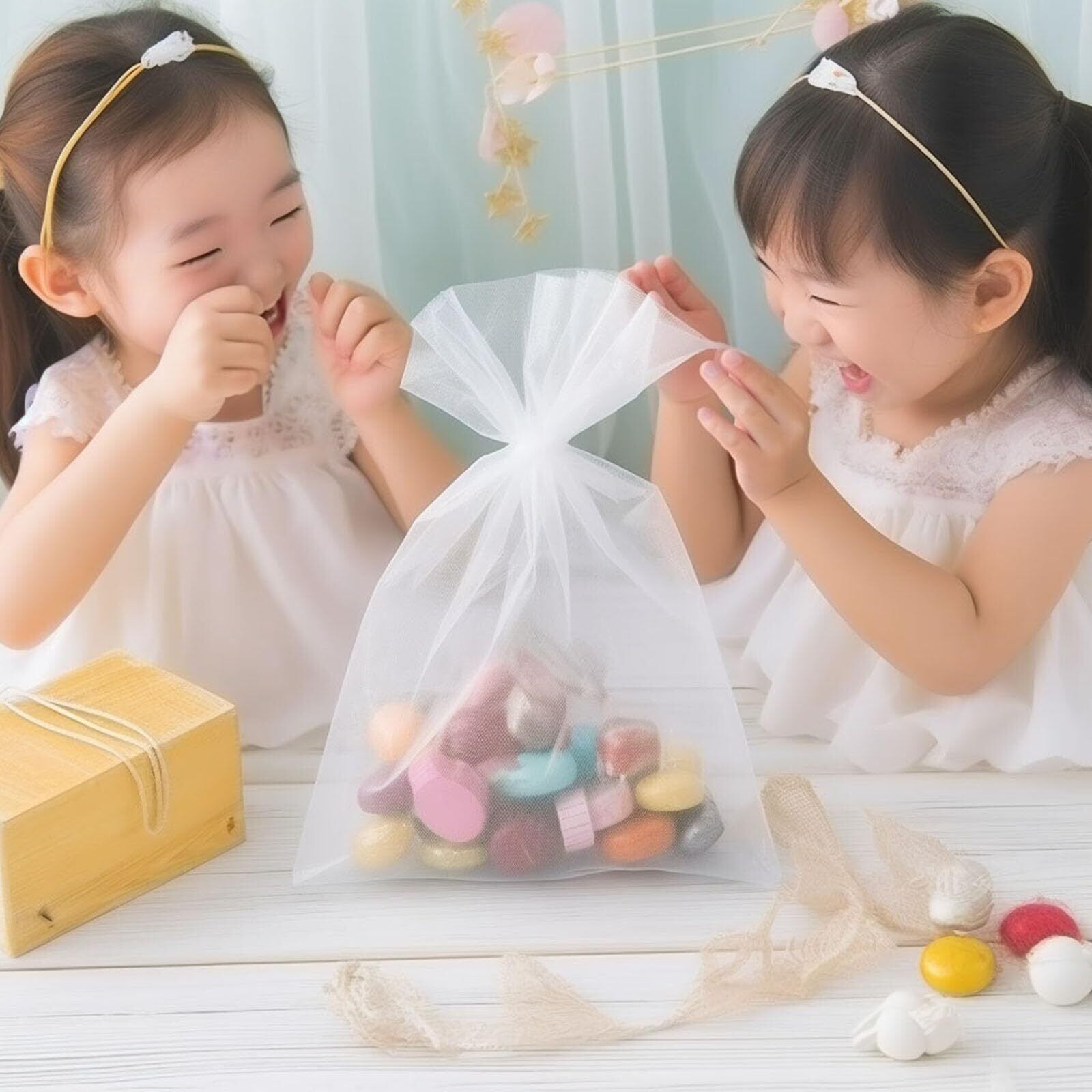 【高品質】高品質のシースルーオーガンジーを使用し、繊細なステッチと耐久性のある縫い目で丁寧に作られているため、ギフトバッグはエレガントで実用的な状態を長く保つことができます。