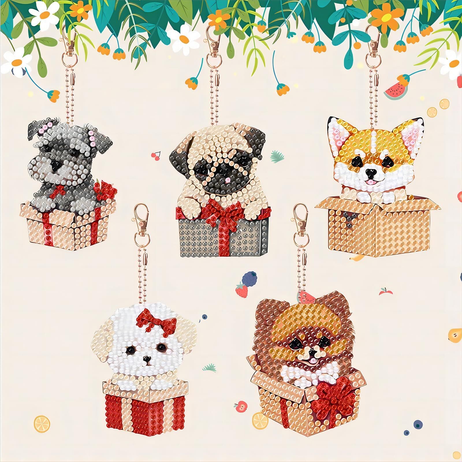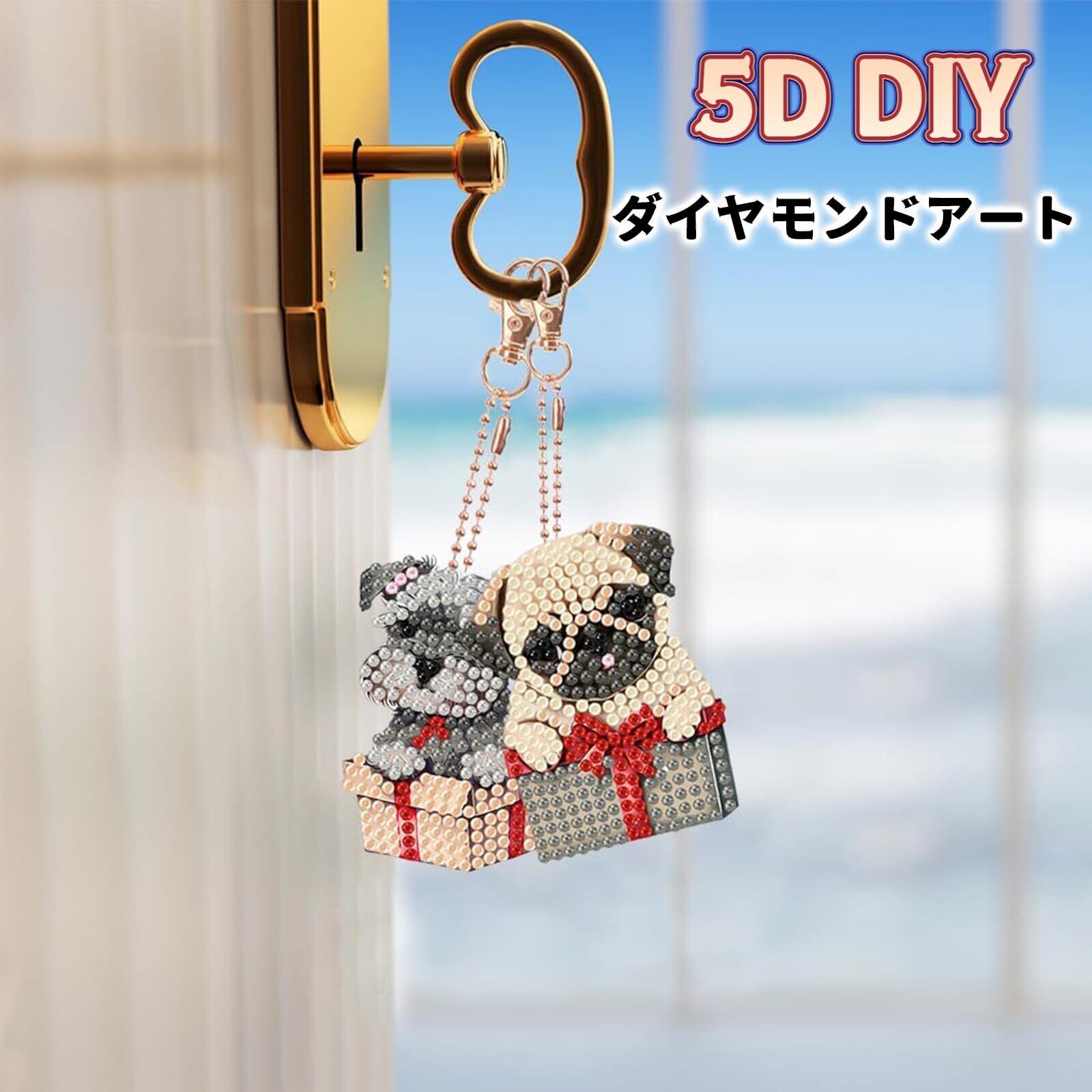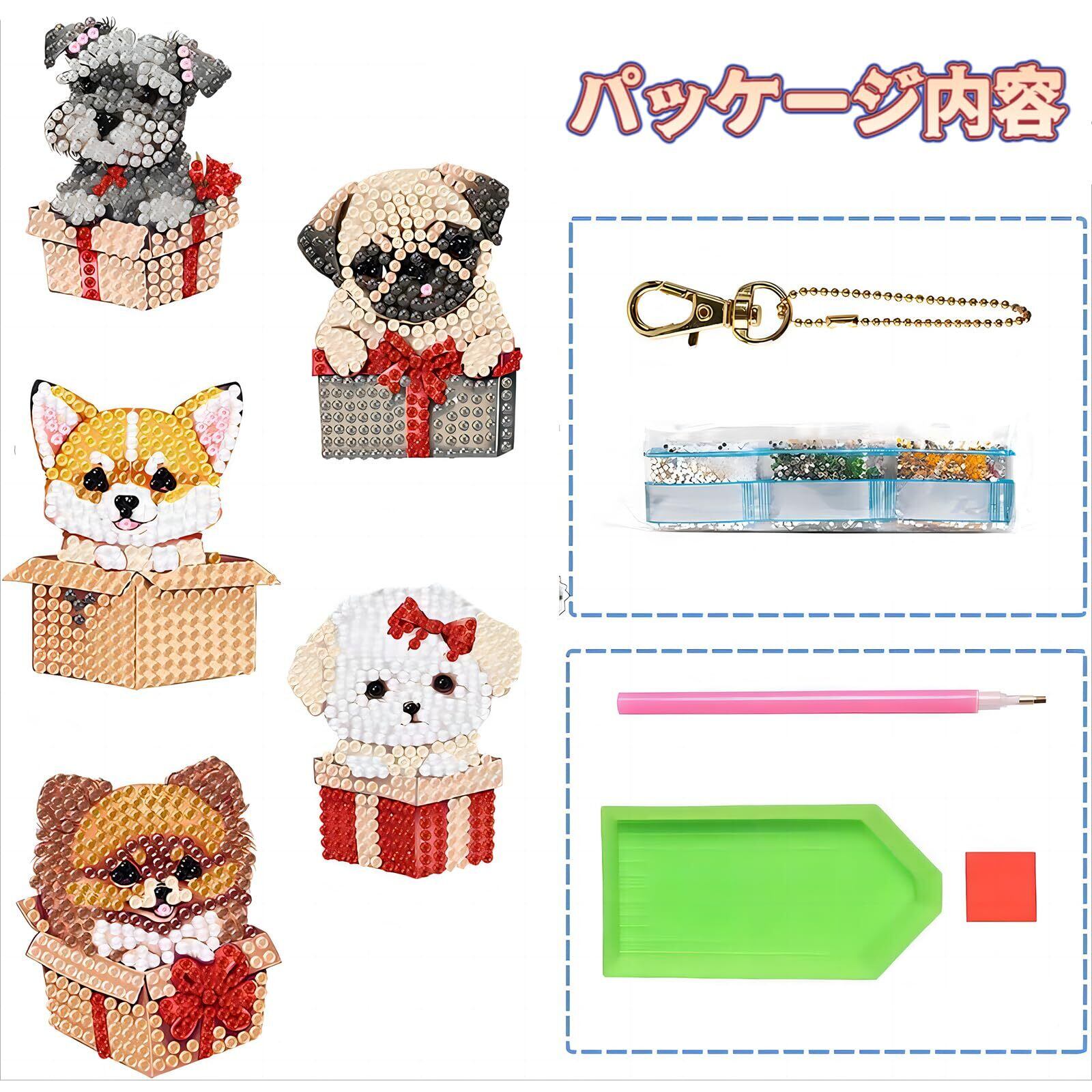 MAEXUS ダイヤモンドアート キーホルダー【 5個セット】DIY キーホルダー 5Dダイヤモンド塗装キット ダイアモンドビーズ キーホルダー 両面全貼り付け DIY手作り キーホルダー 財布 キーペンダント バッグ 装飾用 コップ犬