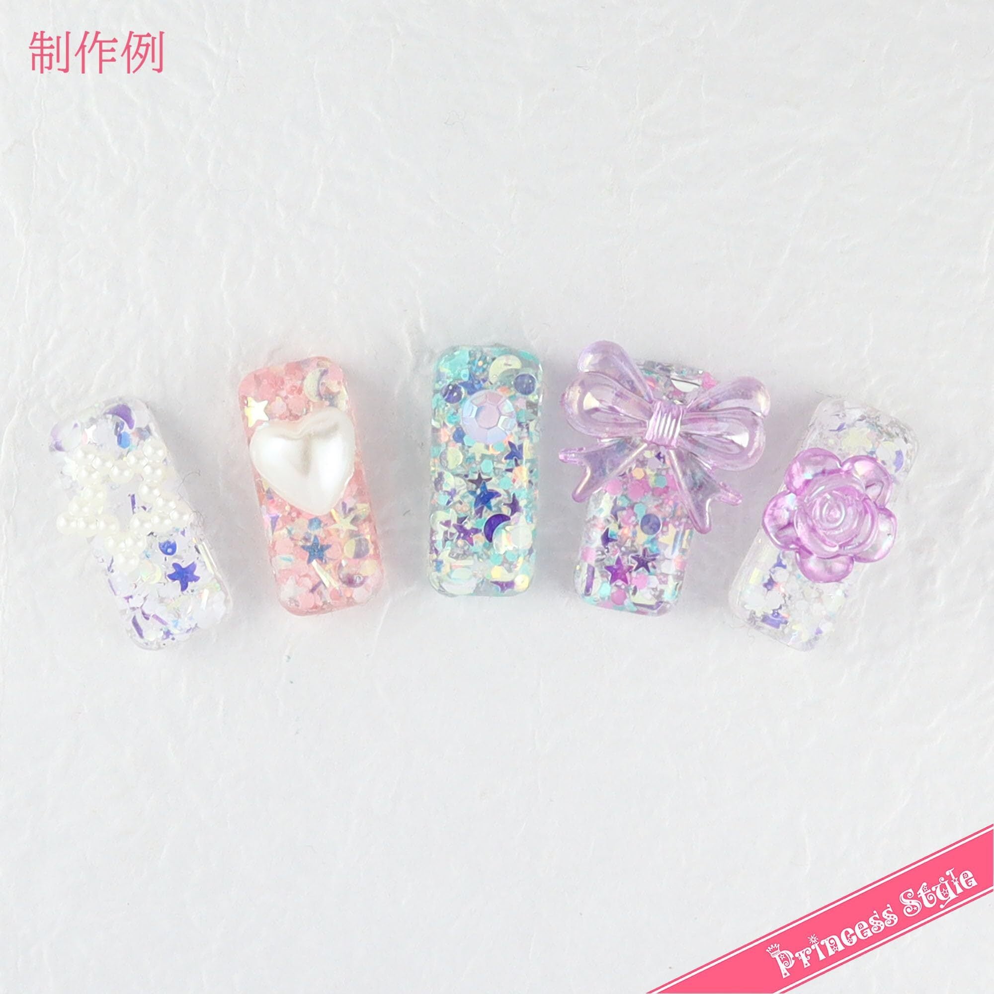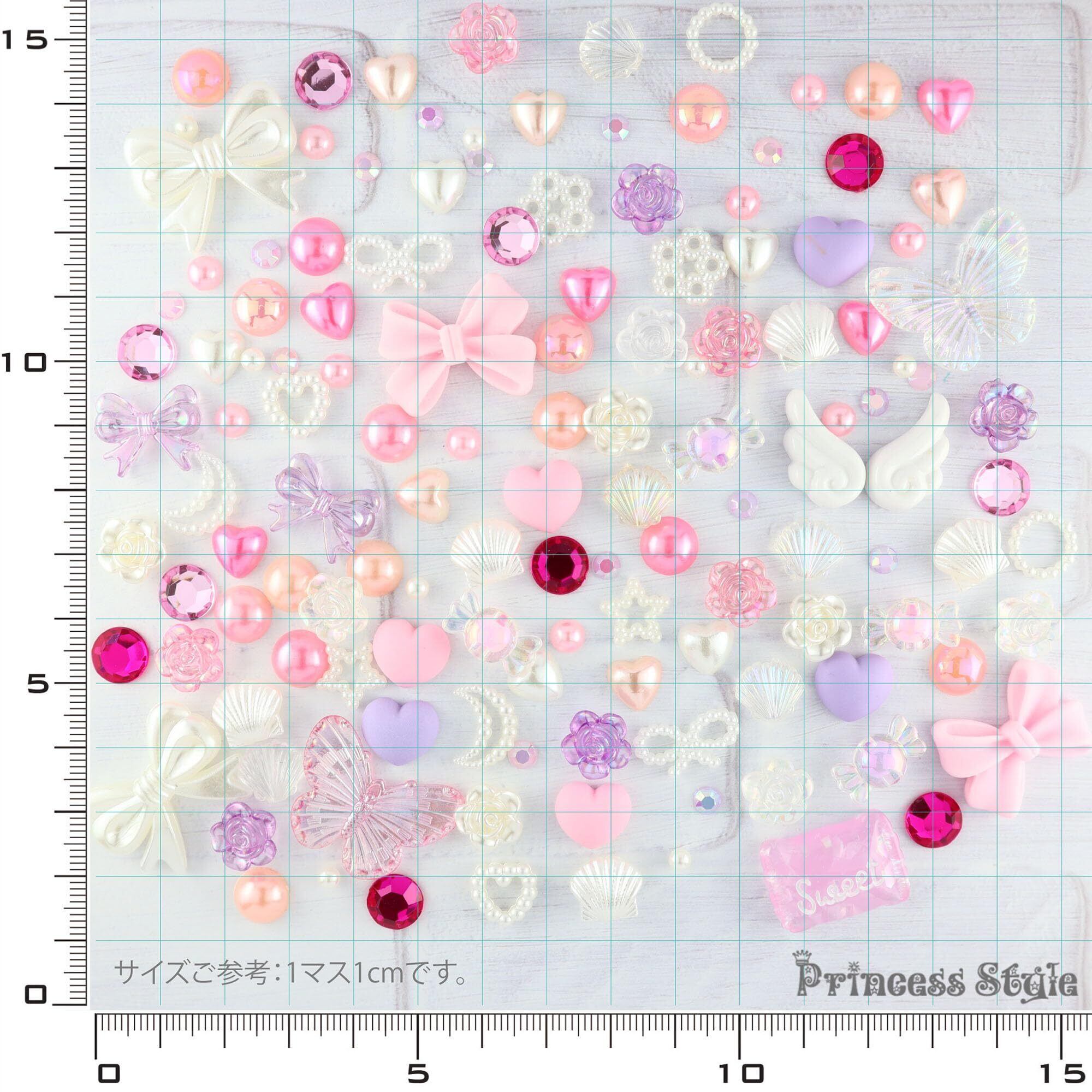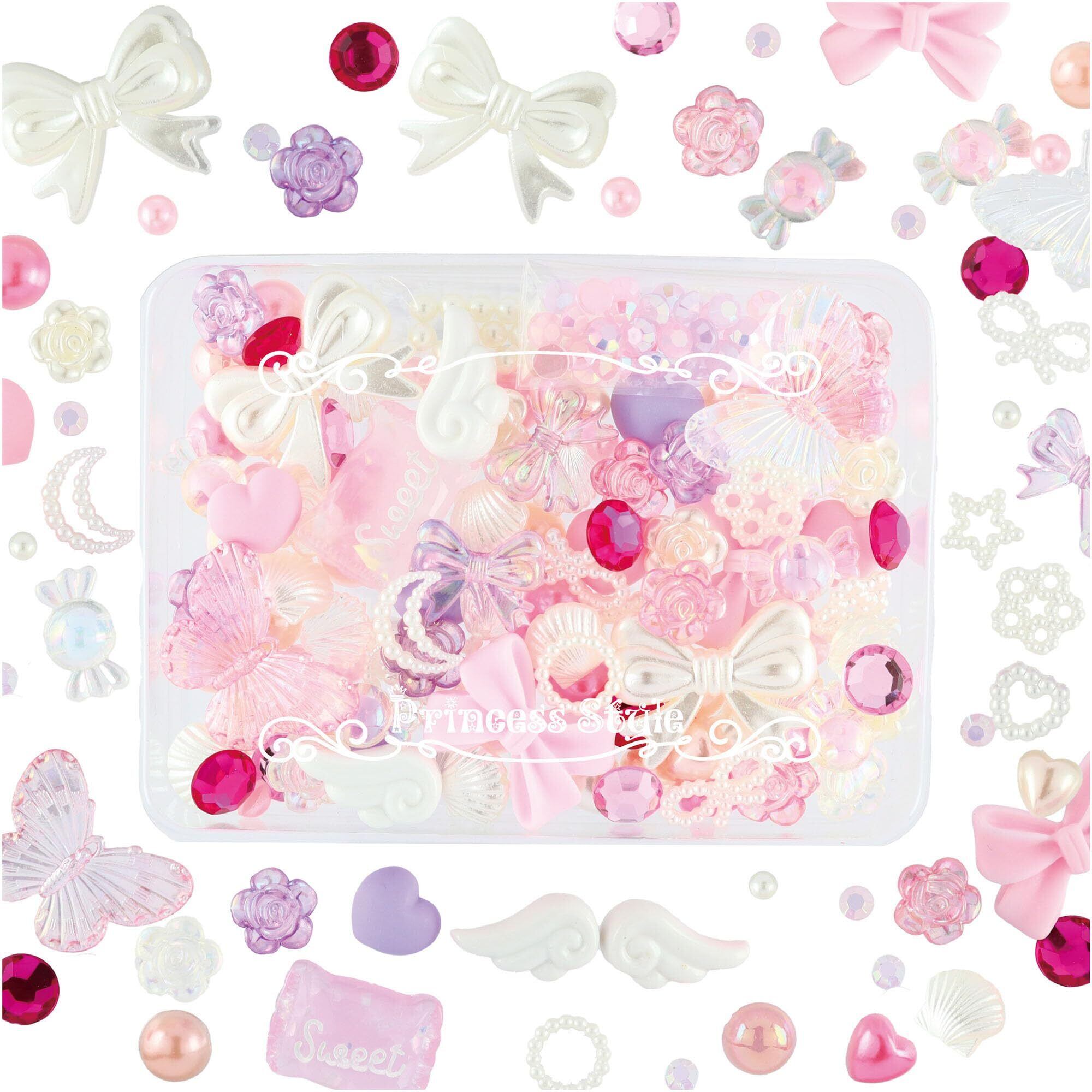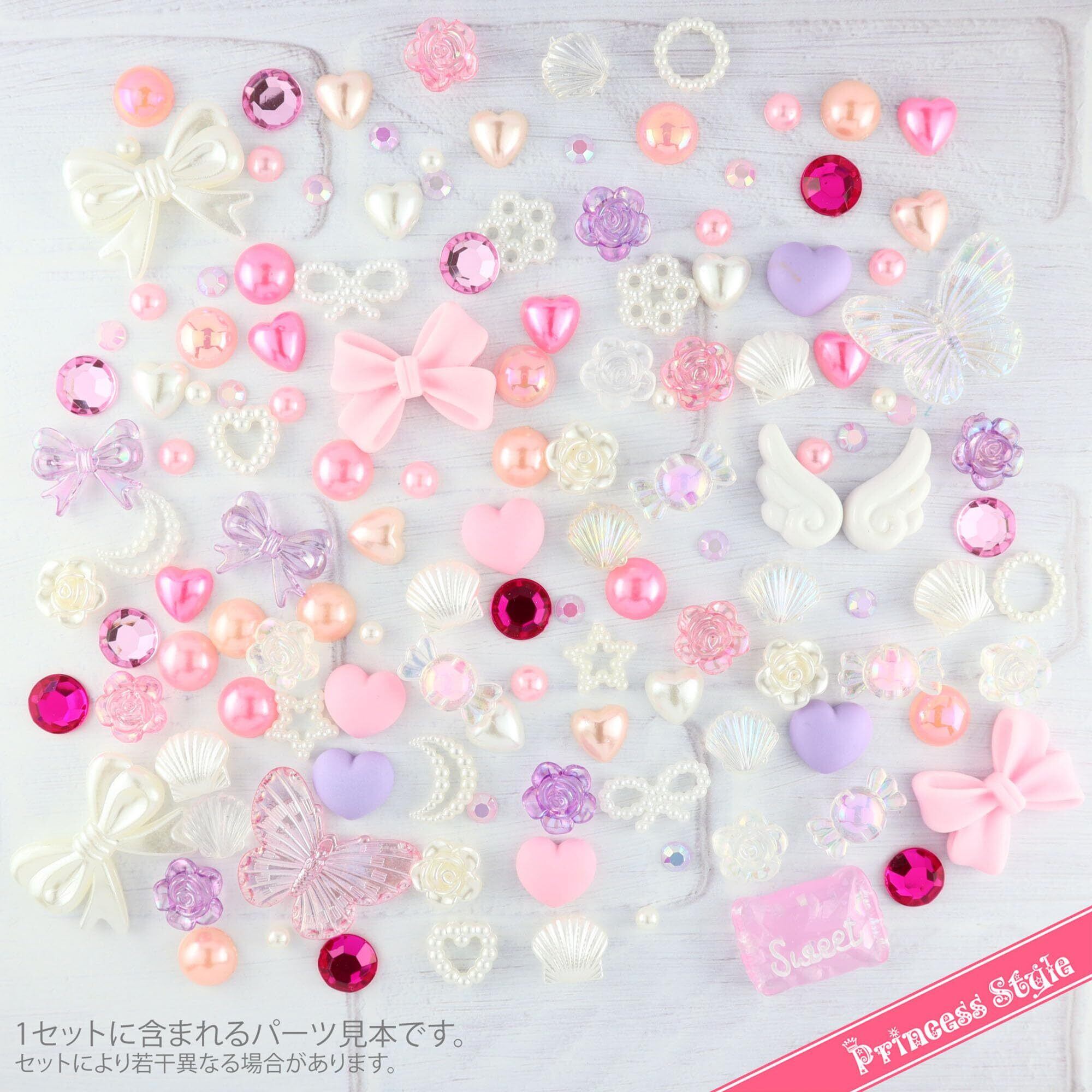 Princess-style デコパーツ ラインストーン ネイル ホイップデコ ヘアアクセサリーパーツ リボン ハート バラ ミックス トレー入り (ピンク系)