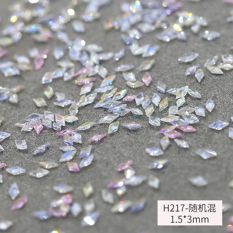 ネイル ラインストーン18種類 ガラスクリスタルホワイトネイルチャームストーン 50個セット ネイルパーツ ネイルストーン 5-10mm (ひし形(混色)-E)