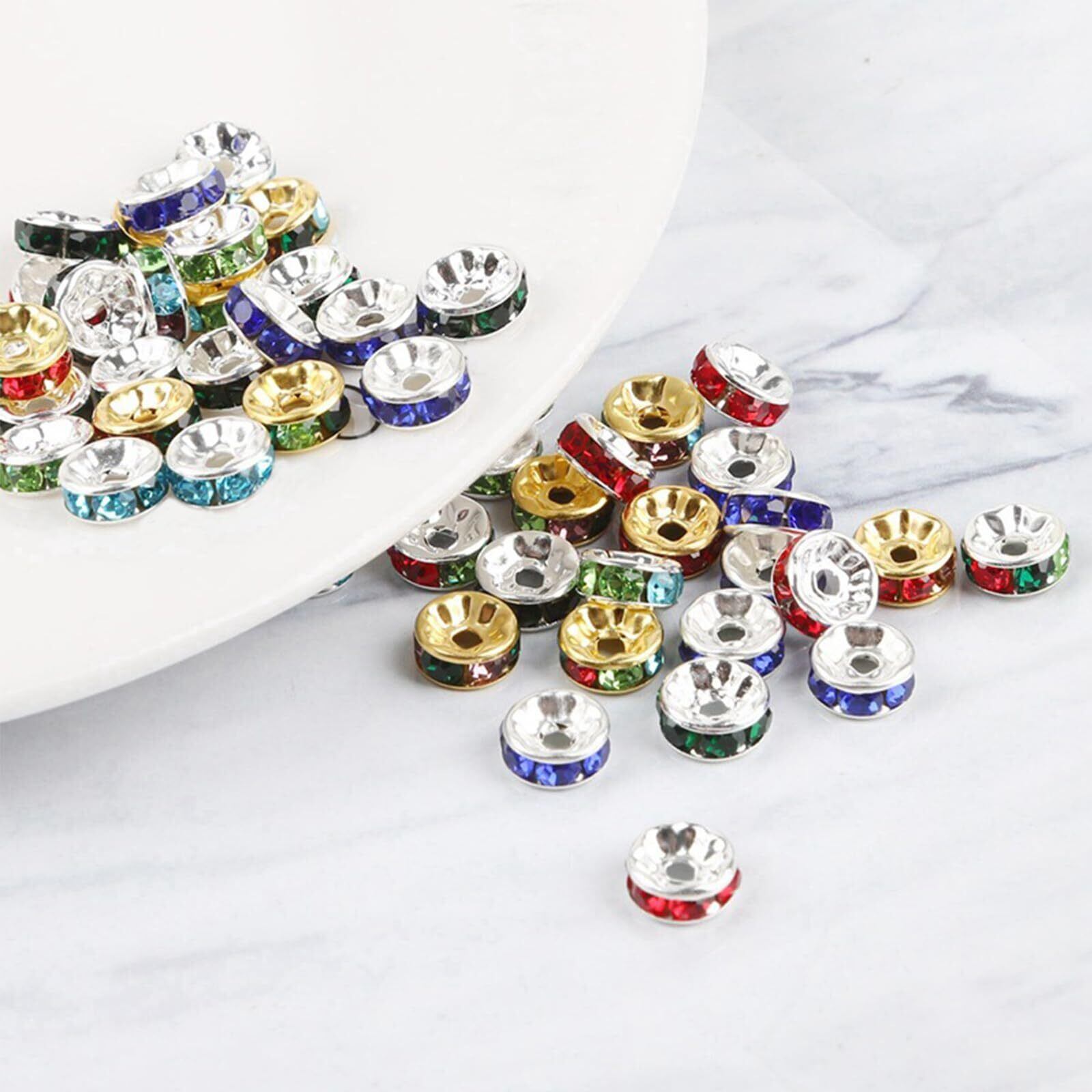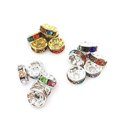 【BEAUTY PLAYER】ロンデル 6mm 平型 200個 ゴールド シルバー 各100個 ラインストーン付き スペーサービーズ メタル ビーズ アクセサリーパーツ ジュエリー 手芸 クラフト用品 手作り素材 DIY材料 (6mm 混合色)