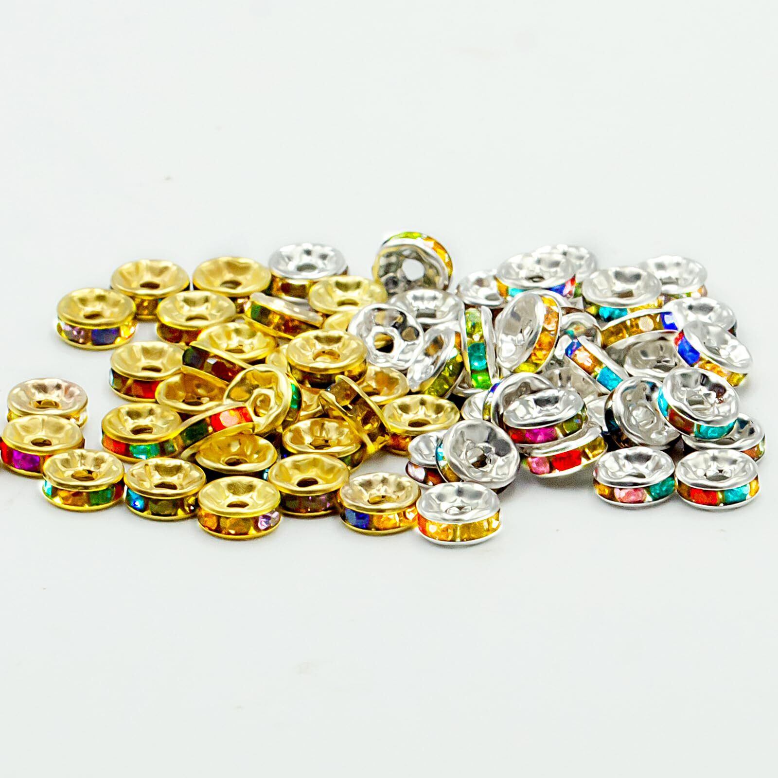 【在庫セール】【BEAUTY PLAYER】ロンデル 6mm 平型 200個 ゴールド シルバー 各100個 ラインストーン付き スペーサービーズ メタル ビーズ アクセサリーパーツ ジュエリー 手芸 クラフト用品 手作り素材 DIY材料 (6mm 混合色)