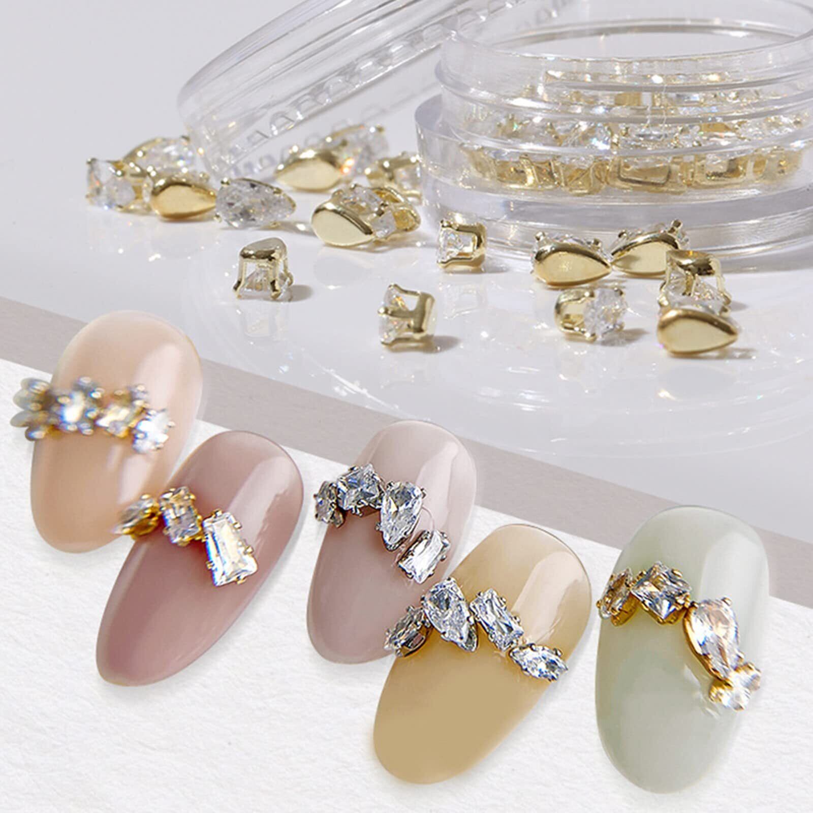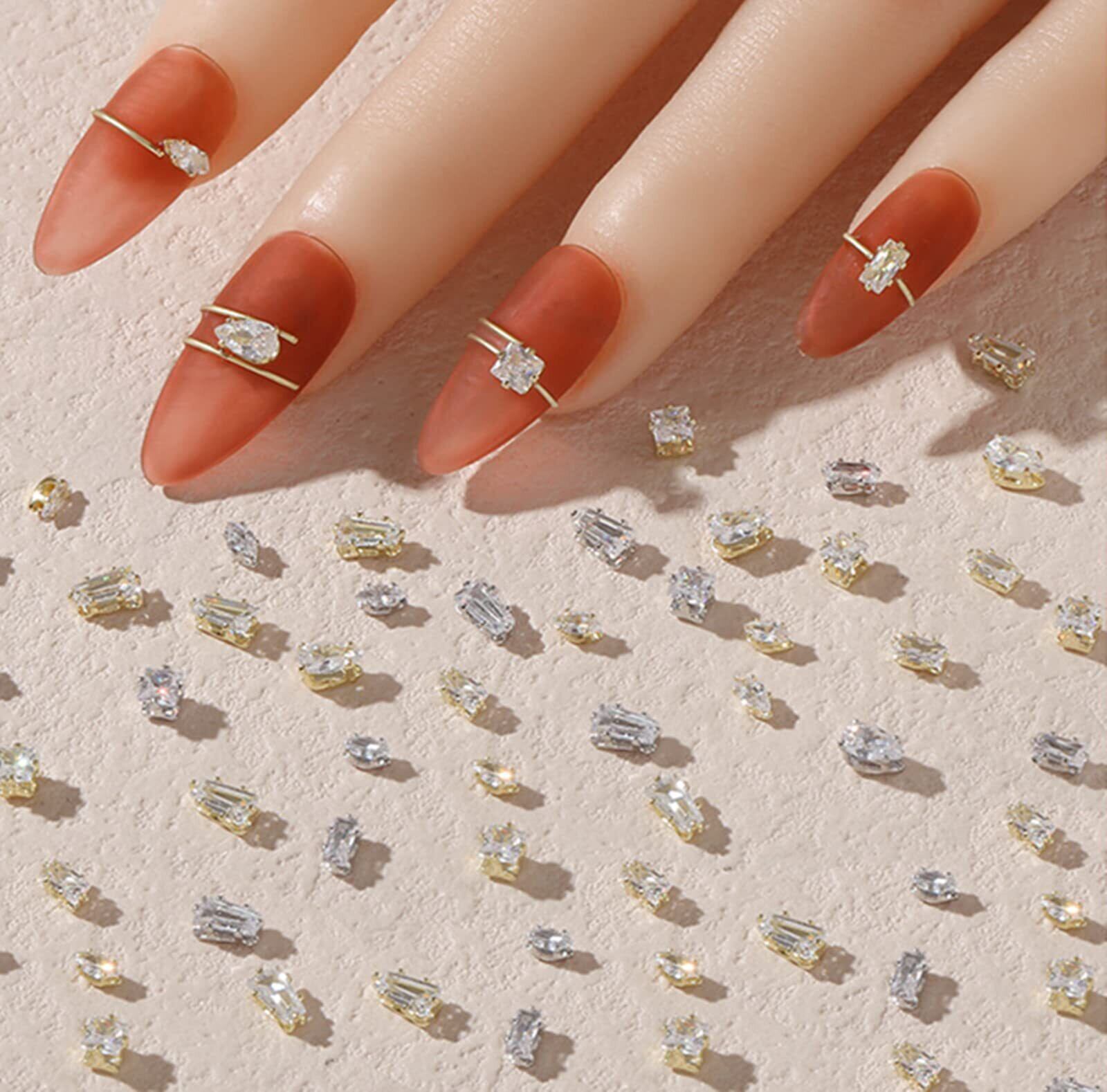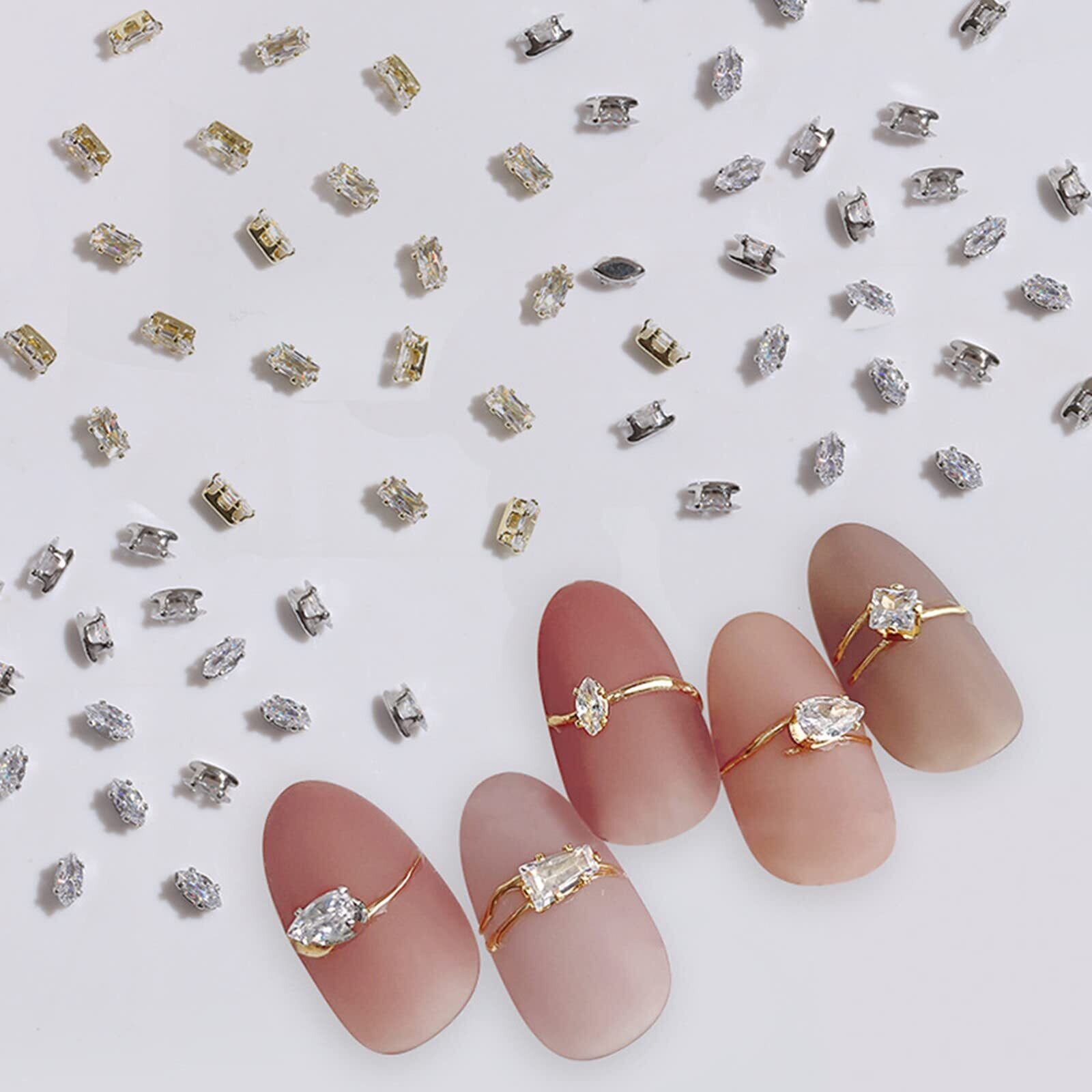 【人気商品】ネイル ラインストーン 台座付き 50個セット ネイルパーツ ストーン 小さい クリア クリスタル 四角 長方形 雫 ビジュー パーツ ネイルアート デコパーツ