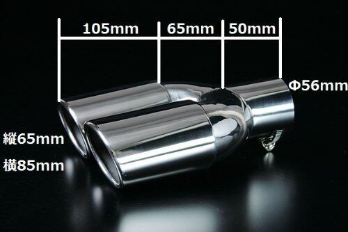 サビに強いステンレス製で丁寧に磨き上げた鏡面加工です。形状は、出口が縦65mm,横85mmのオーバル形状の2本出しです。マフラーカッターの出口部分の最大取付幅は約185mmです。 バンド締め付けタイプなので取り付けも簡単な上、マフラー本体にも傷をつけにくくなっております。 取り付け可能の外径は32mmから56mmです。