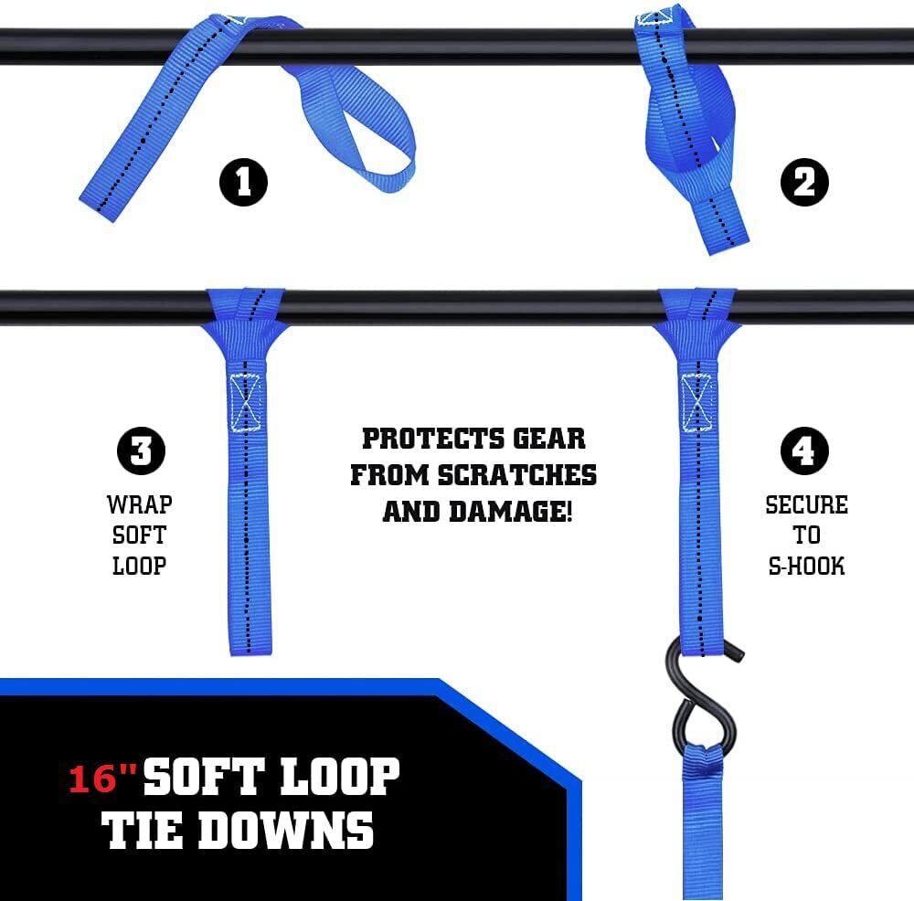 【商品詳細】セット内容:4本組 ベルト長:4m;ベルト幅:25㎜;破断強度:800kg;最大使用荷重:300kg;ソフトループ タイダウンストラップ4本【カラー】ブルー。 商品にご満足頂けなかった場合、ご遠慮なく弊店にお問い合わせください。