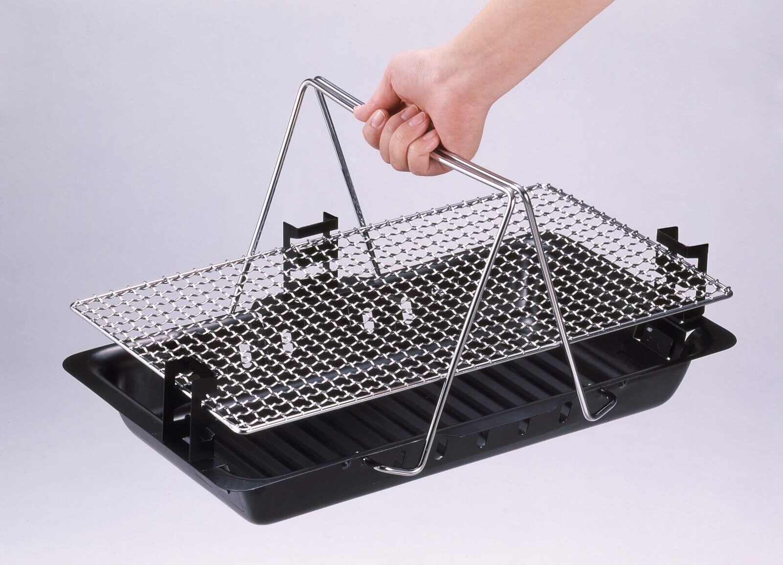 網用のハンドル付きのため、炭の入れ替え・段階調整が手を汚さずに行えます。