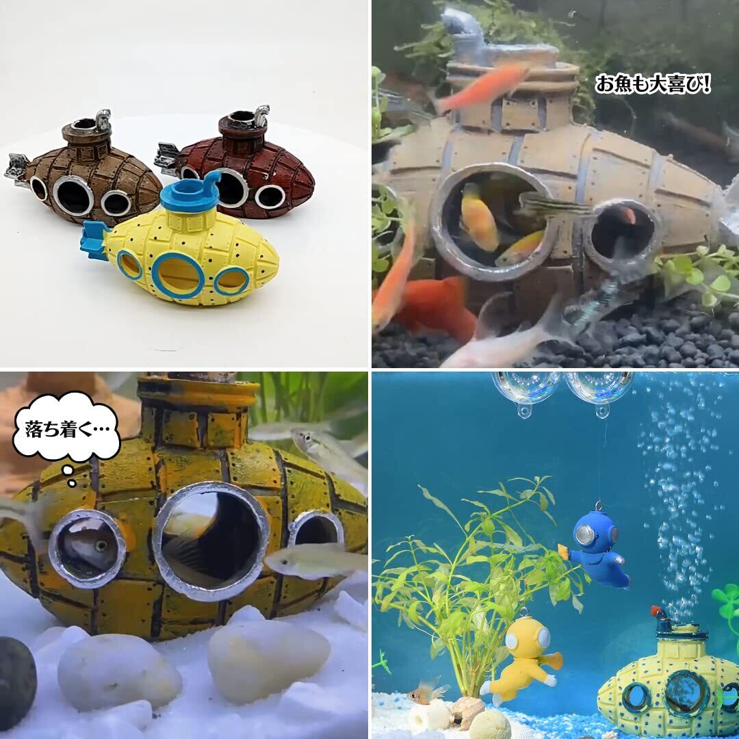 Charmoon 水槽 オブジェ 潜水艦 船 サブマリン 隠れ家 シェルター アクアリウム オーナメント おしゃれ 置物 (ブラウン)