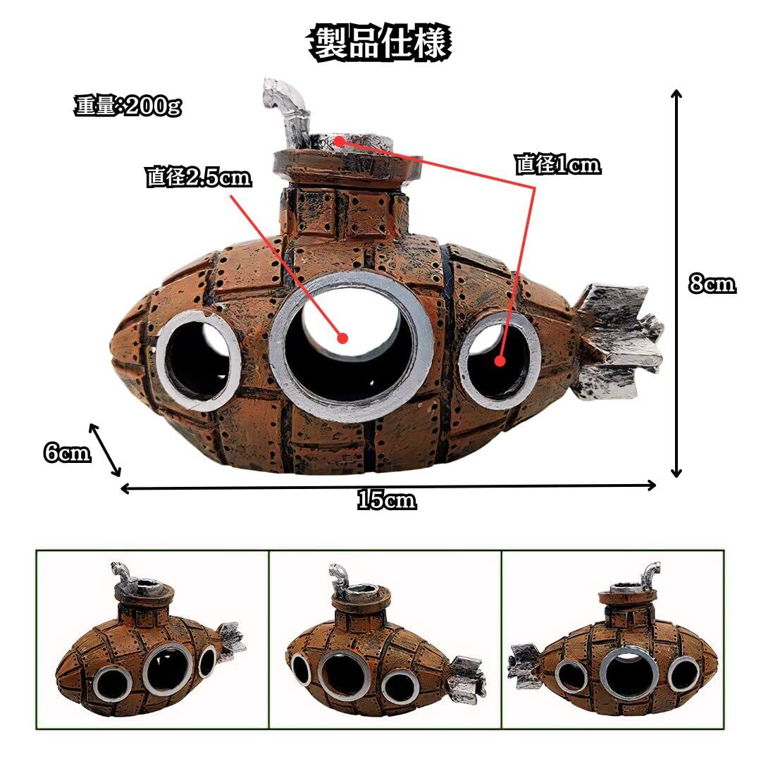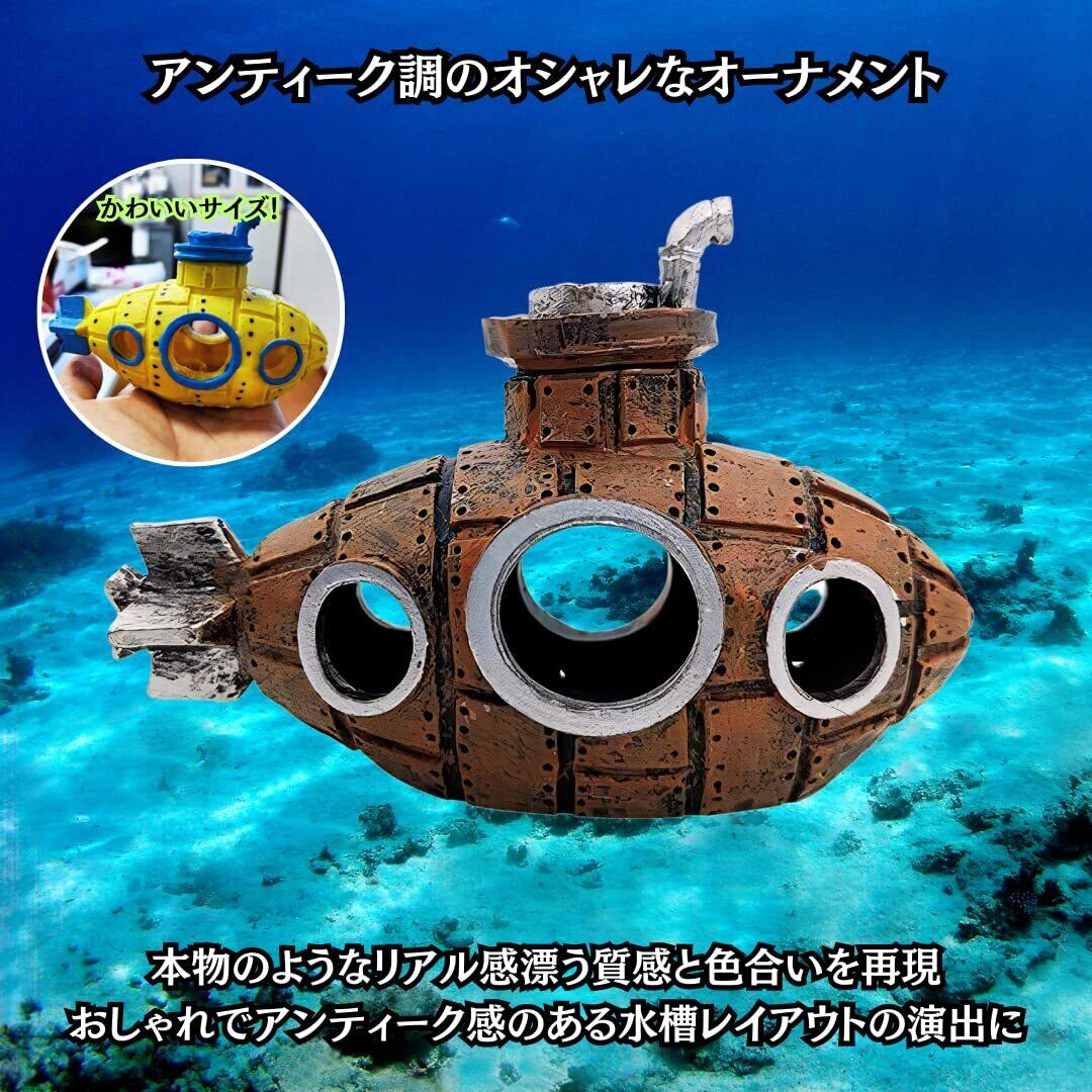 【リアル感漂うおしゃれなオーナメント】可愛らしい潜水艦をモチーフにした、アンティーク調のアクアリウムオーナメントです。独自の塗装技術により、本物のようなリアルな質感と色合いを再現しております。おしゃれで味のある、素敵な水槽レイアウトの演出に最適です。