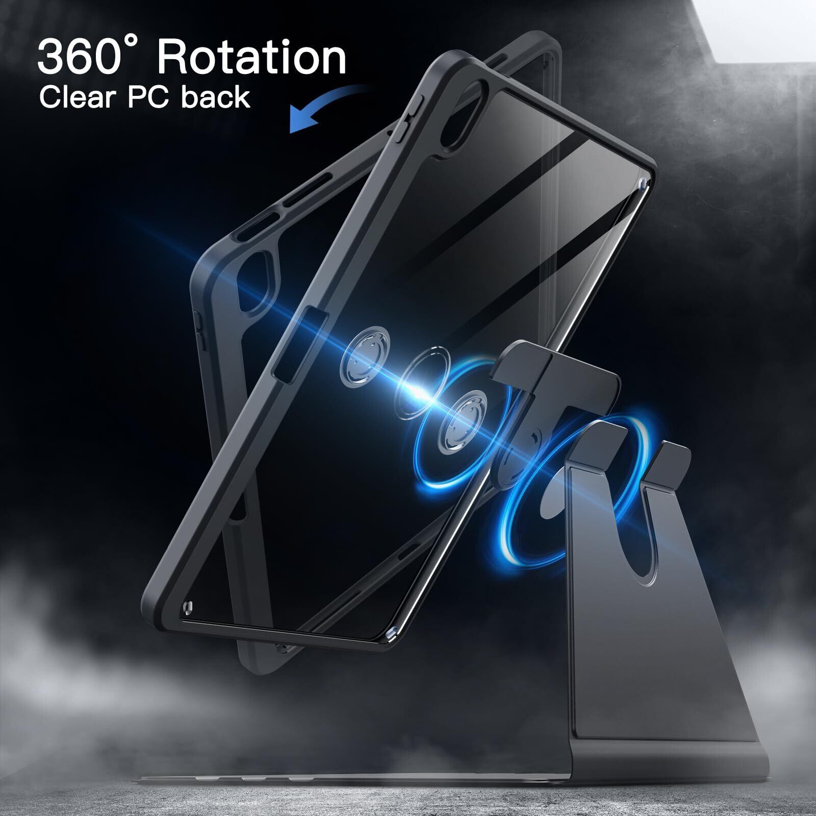 JETech 回転ケース iPad Air 11インチ M3/M2 (2025/2024)、iPad Air 5/4用 (2022/2020、第5/4世代、10.9インチ) Pencilホルダー付き 360°回転保護 スタンドカバー クリアバック 自動ウェイク/スリープ (スペースグレイ)
