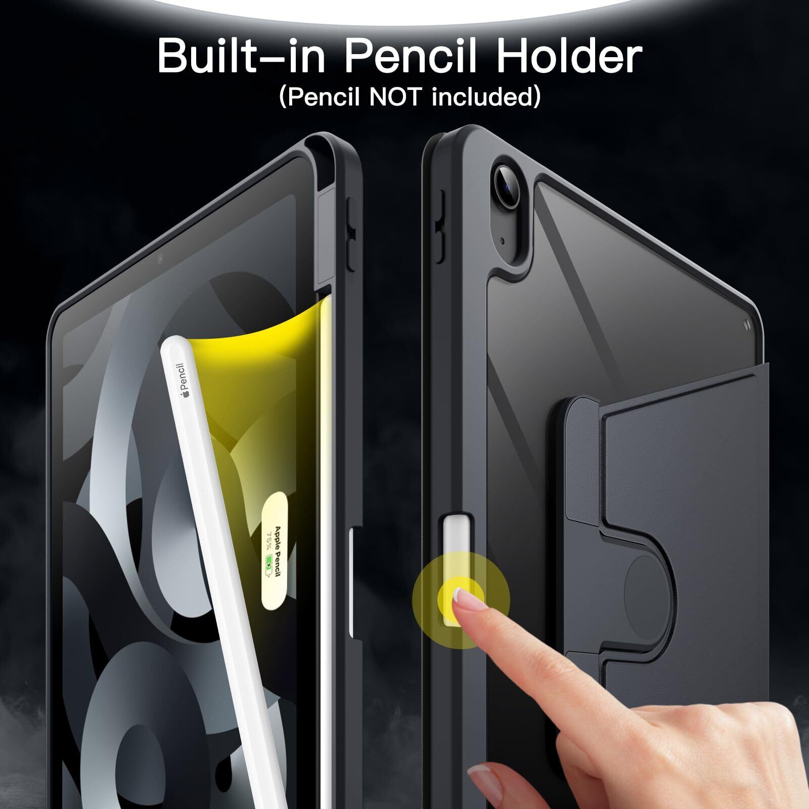[Pencilホルダー内蔵] いつでもPencilをケースに収納でき、どこでもiPadと一緒に使用でき、スロットに簡単に取り出すこともできます (注: Pencilは含まれていません)
