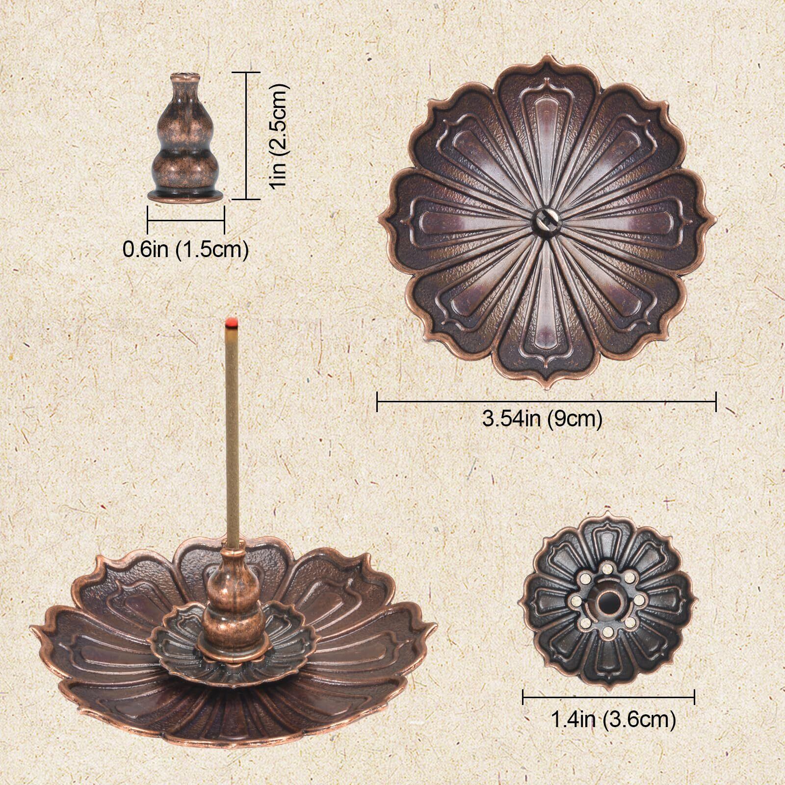 【おしゃれな蓮デザイン】蓮をテーマにした、きれいで高級感が感じられるお香立てです。耐久性に優れた銅合金製で、水洗いや石膏で直接拭き取ることができるのでお手入れが簡単。中央部は、1.5mmから3mmの孔径の様々なサイズの多孔質設計を採用しています。