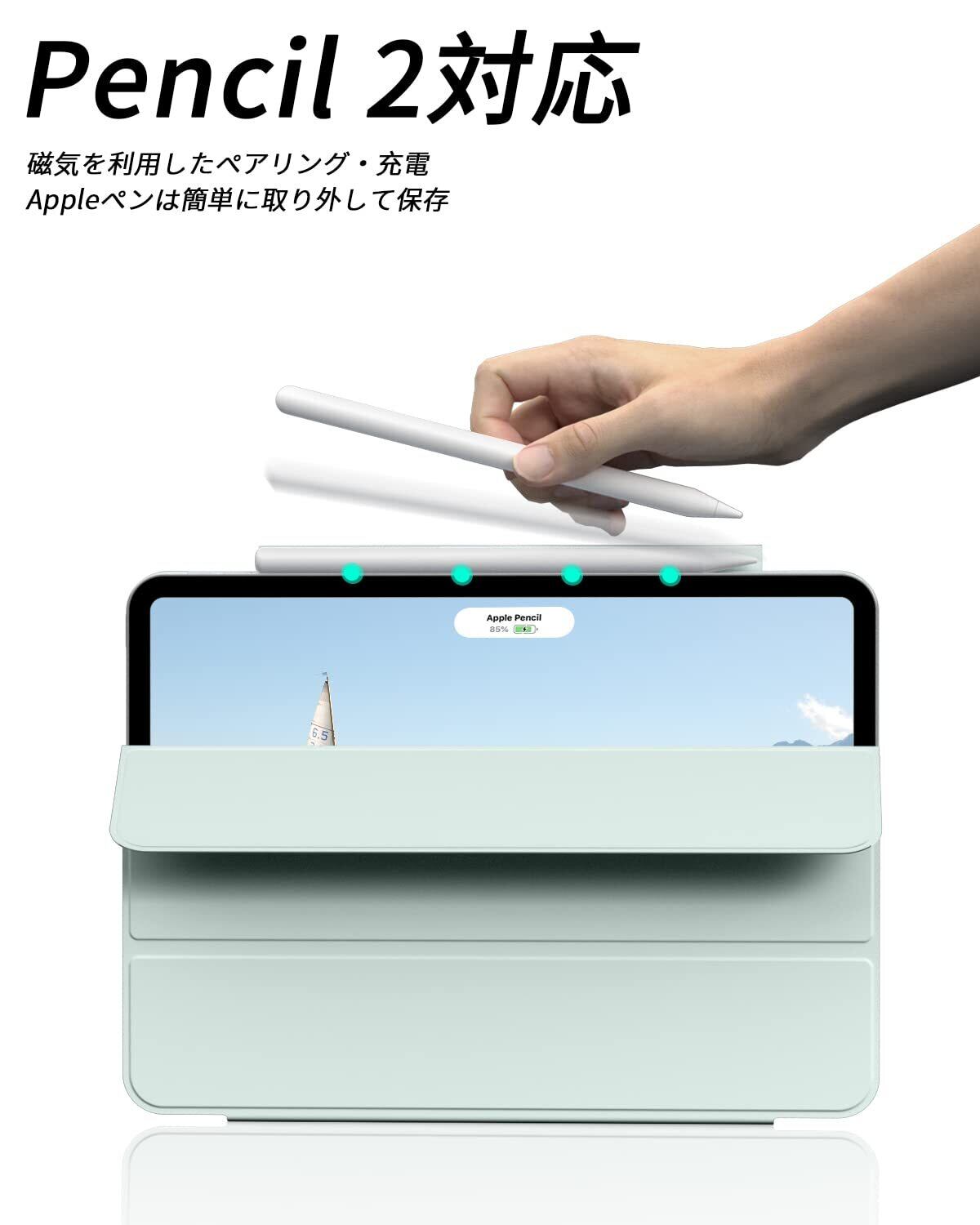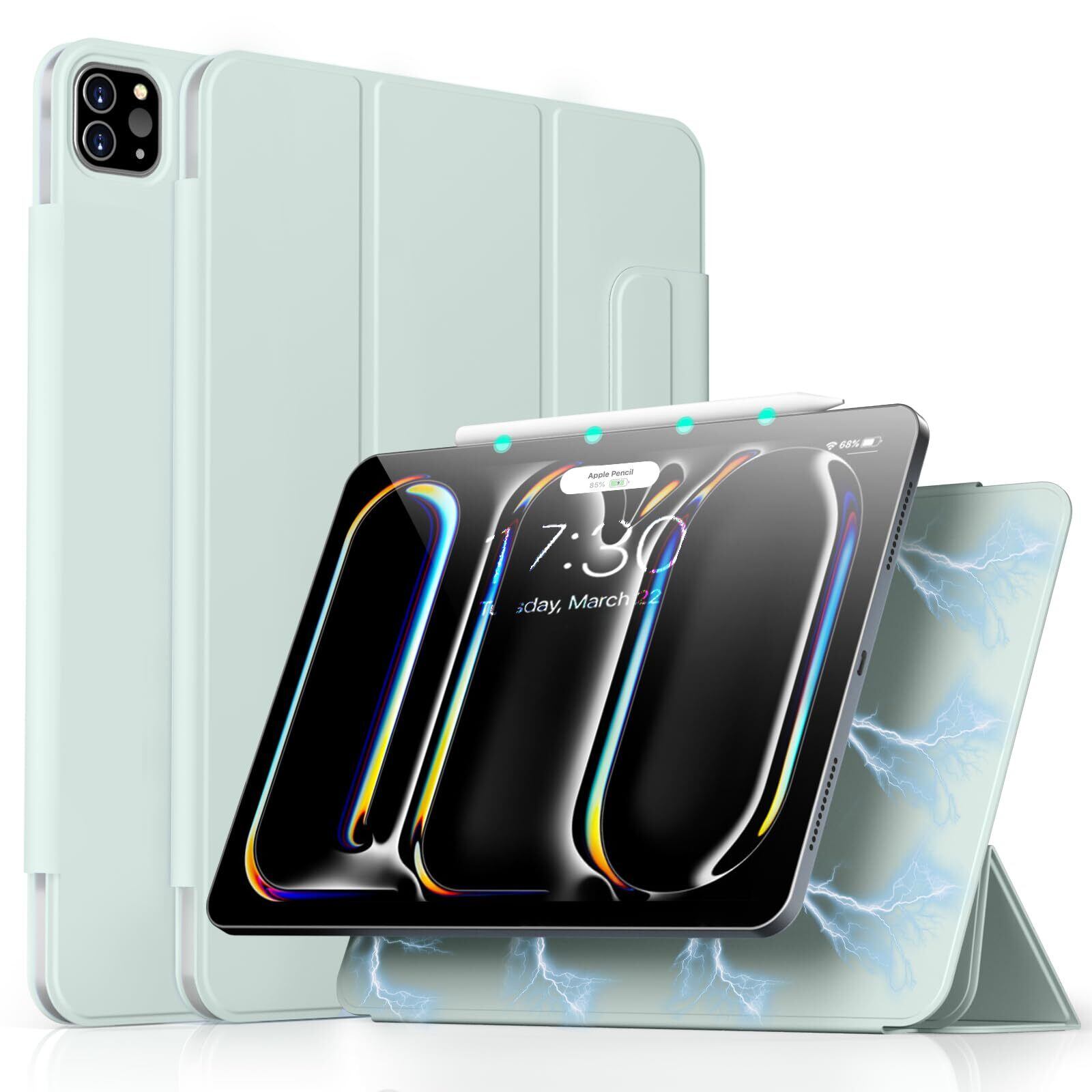 Aoub iPad Pro 11 インチ ケース 第5世代 2024 専用 マグネット 磁気吸着式 カバー 三つ折スタンド Pencil Pro/USB-C完全対応 Pencil Proワイヤレス充電対応 オートスリープ/ウェイク対応 ライトグリーン