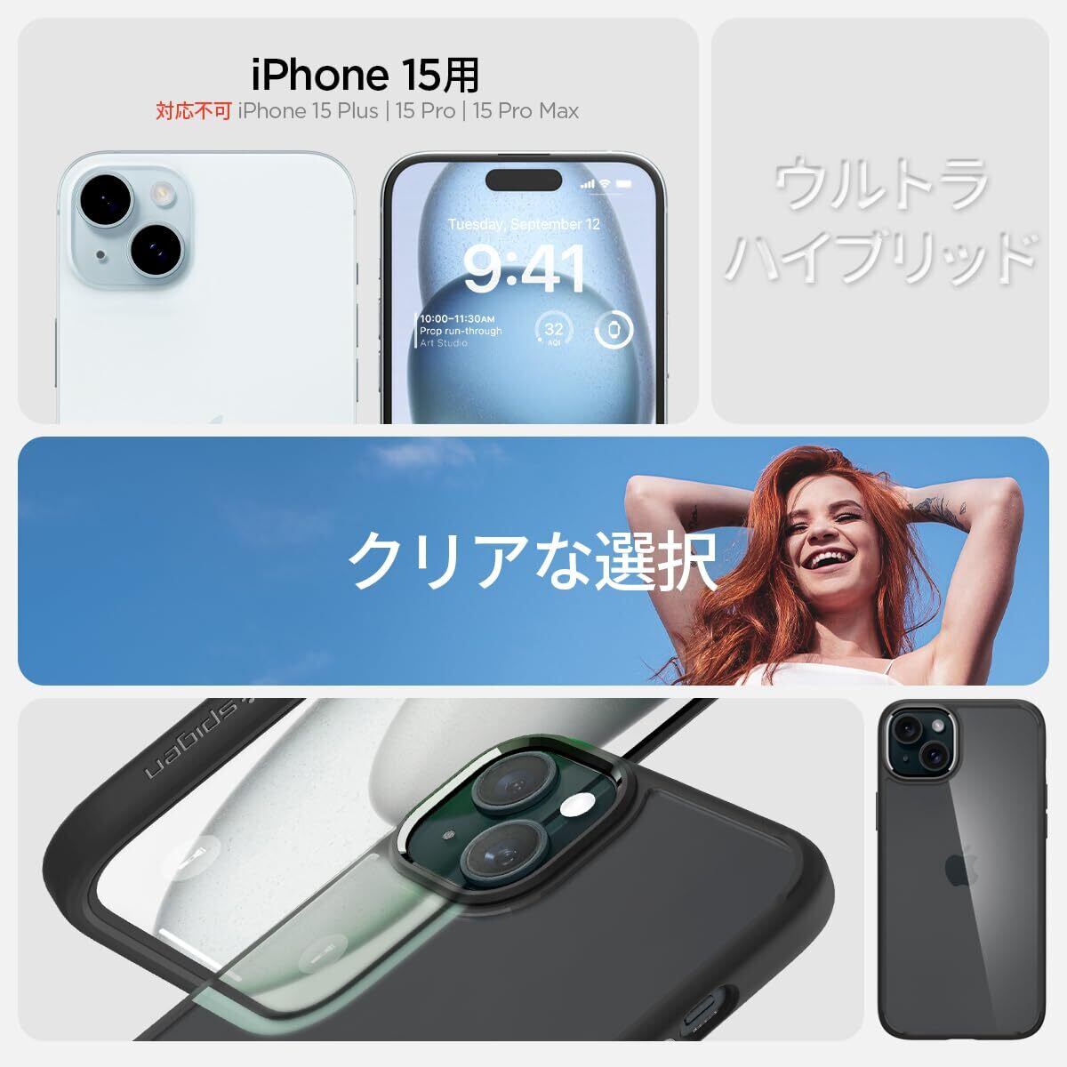 Spigen 【創業18年の技術力】 iPhone 15 ケース クリア 耐衝撃 黄変なし 米軍MIL規格取得 ストラップホール 透明 TPU バンパーケース 2重構造 レンズ保護 擦り傷防止 ワイヤレス充電対応 ウルトラ・ハイブリッド ACS06799 (マット・ブラック)