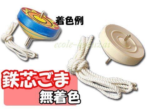 【鉄芯[てっしん]ごま(ひも付)≪無着色≫】3個セット 【ひとつのこまのセット内容】 ・こま・・・・・1 ・ひも・・・・・1 【サイズ】 ・こま:直径5.8×高さ5.4cm ・ひも:直径4mm×長さ130cm 【材質】 木・鉄