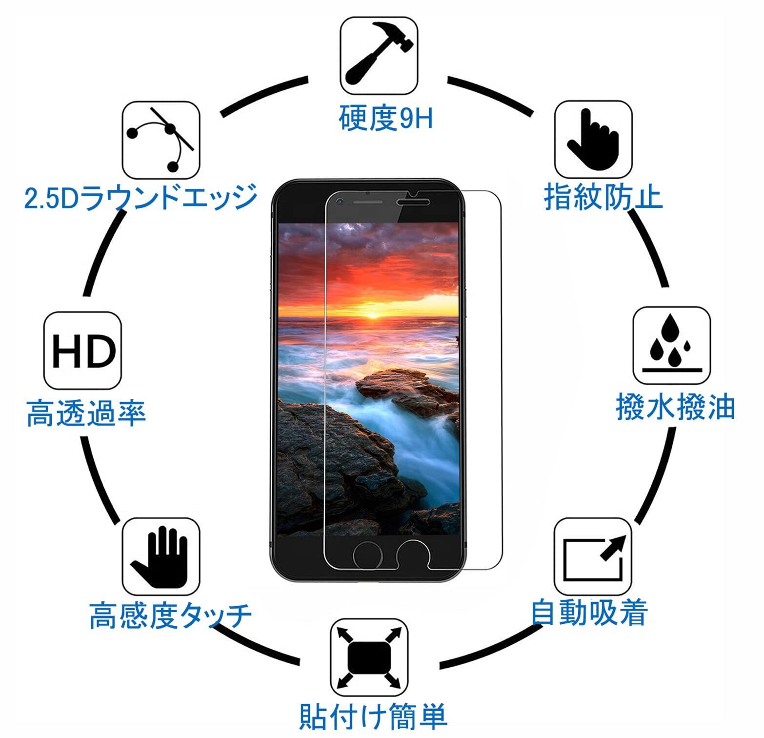 【数量限定】iPhone8 / iPhone7 用 ガラスフイルム iPhone6 / iPhone 6s 用 フィルム 液晶 強化 ガラス (2枚セット) 9H硬度 キズ防止 貼り付け簡単 高感度 飛散防止 高透過率 指紋防止 気泡ゼロ 自動吸着 ケースに干渉しない 3D Touch対応 アイフォン8 / 7 / 6 / 6s 対応 保護フィルム 4.7インチ