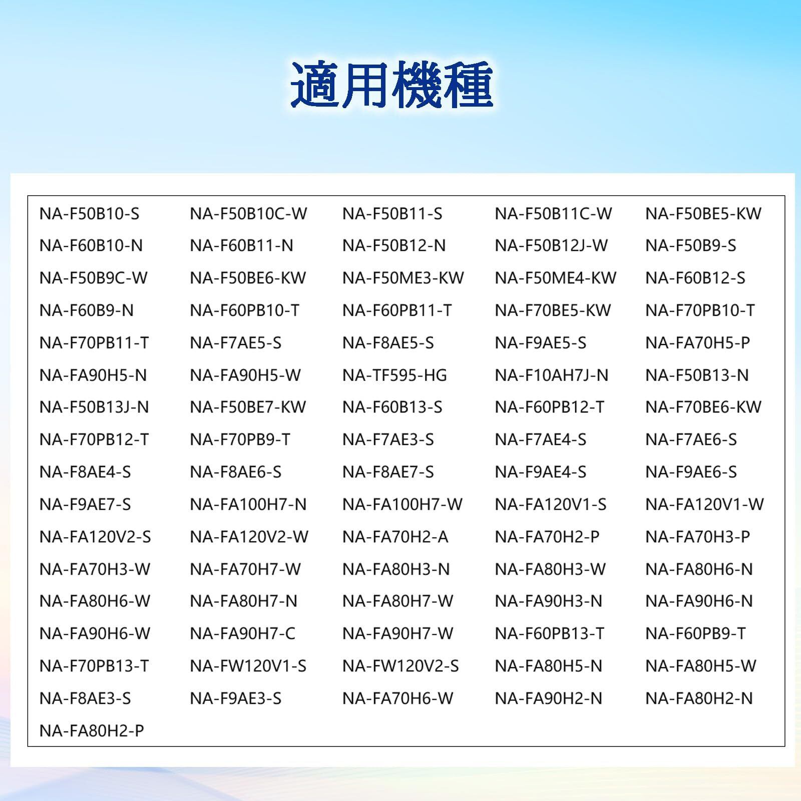 【適用機種1】NA-F50B10-S/NA-F50B10C-W/NA-F50B11-S/NA-F50B11C-W/NA-F50BE5-KW/NA-F60B10-N/NA-F60B11-N/NA-F50B12-N/NA-F50B12J-W/NA-F50B9-S/NA-F50B9C-W/NA-F50BE6-KW/NA-F50ME3-KW/NA-F50ME4-KW/NA-F60B12-S/NA-F60B9-N/NA-F60PB10-T/NA-F60PB11-T/NA-F70BE5-KW/NA-F70PB10-T/NA-F70PB11-T/NA-F7AE5-S/NA-F8AE5-S/NA-F9AE5-S/NA-FA70H5-P/NA-FA90H5-N/NA-FA90H5-W