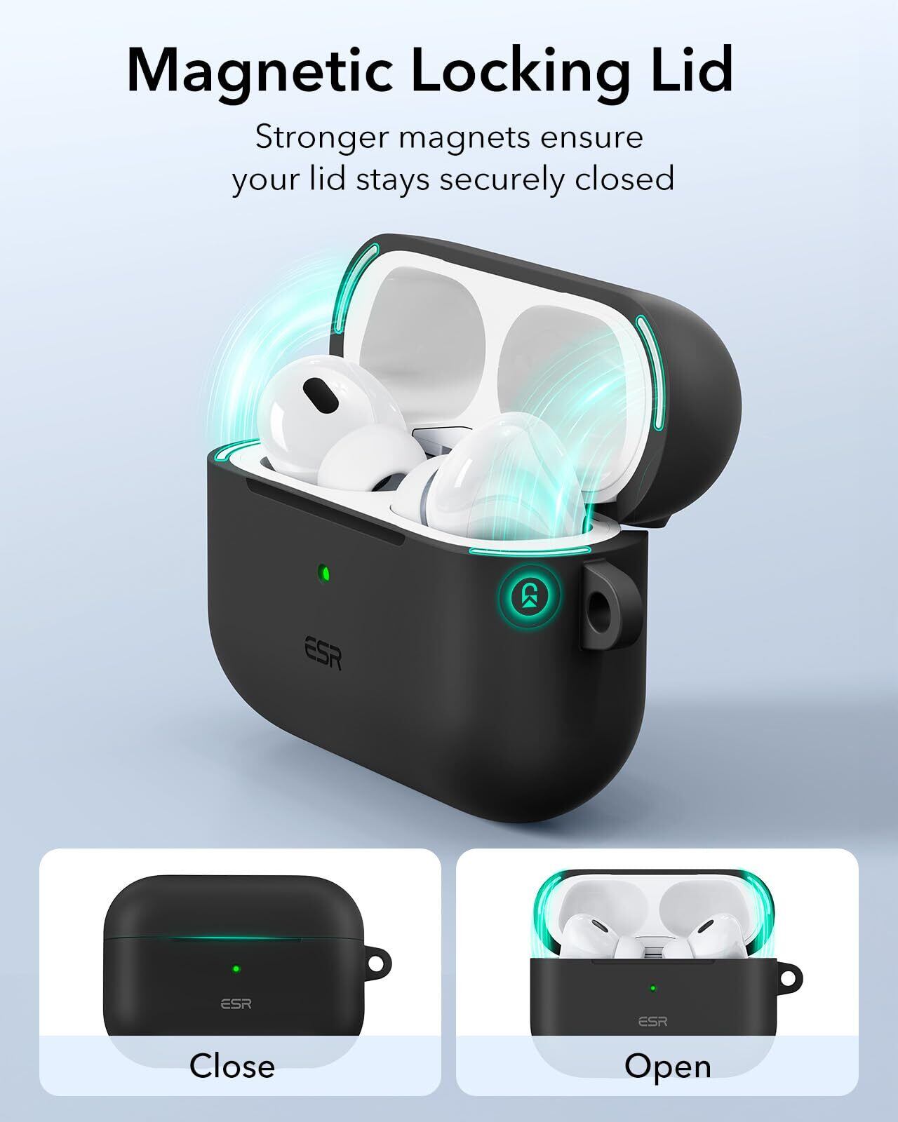 ESR AirPods Pro2 ケース (HaloLock) AirPods Pro 第2世代/第1世代 (2023/2022/2019)専用 MagSafe 対応 カラビナ付き完全落下防止カバー ワイヤレス充電対応 耐衝撃 Bounce Series ブラック