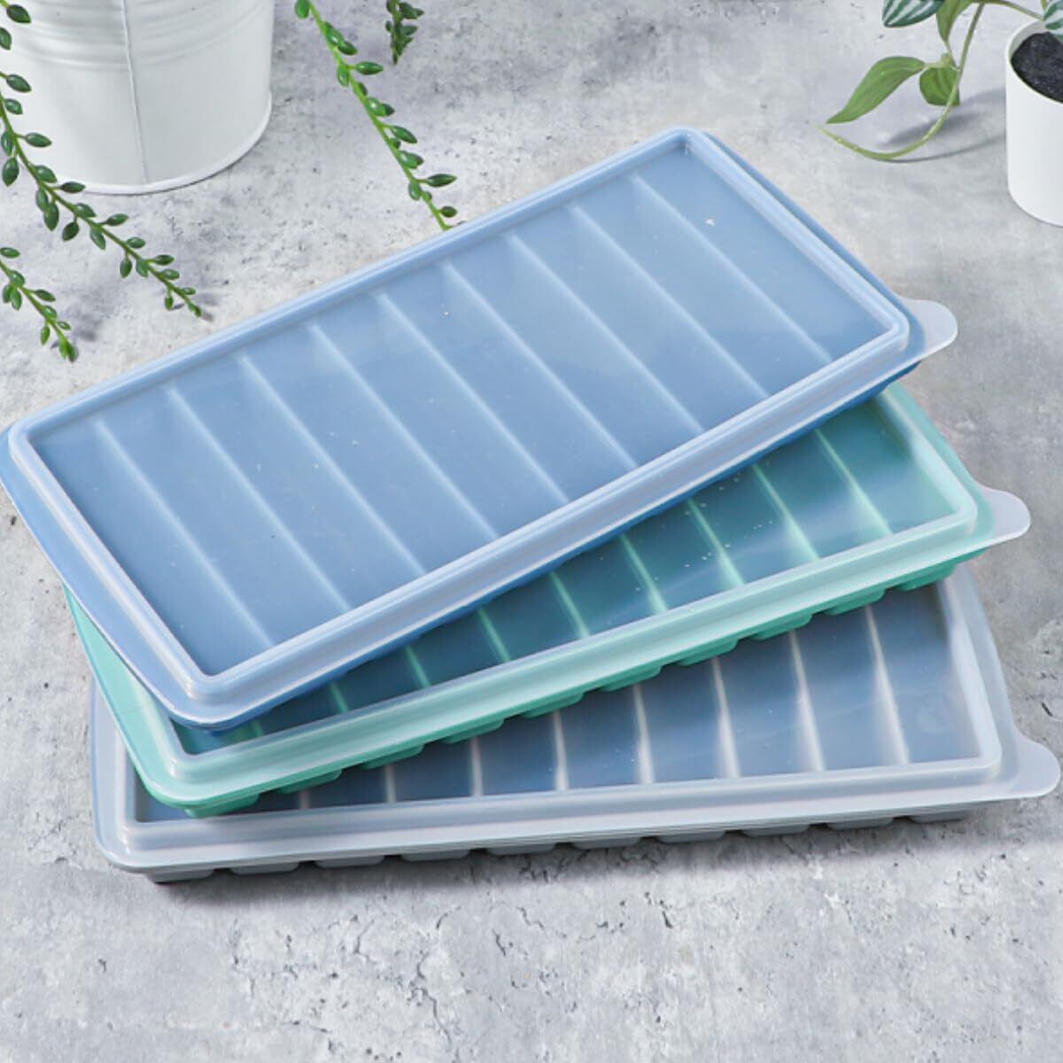 【蓋付き設計】蓋付き重ね置きができ、冷凍庫内にすっきり収納できて、密封性良いし水漏れなく、汚れ防止できます。