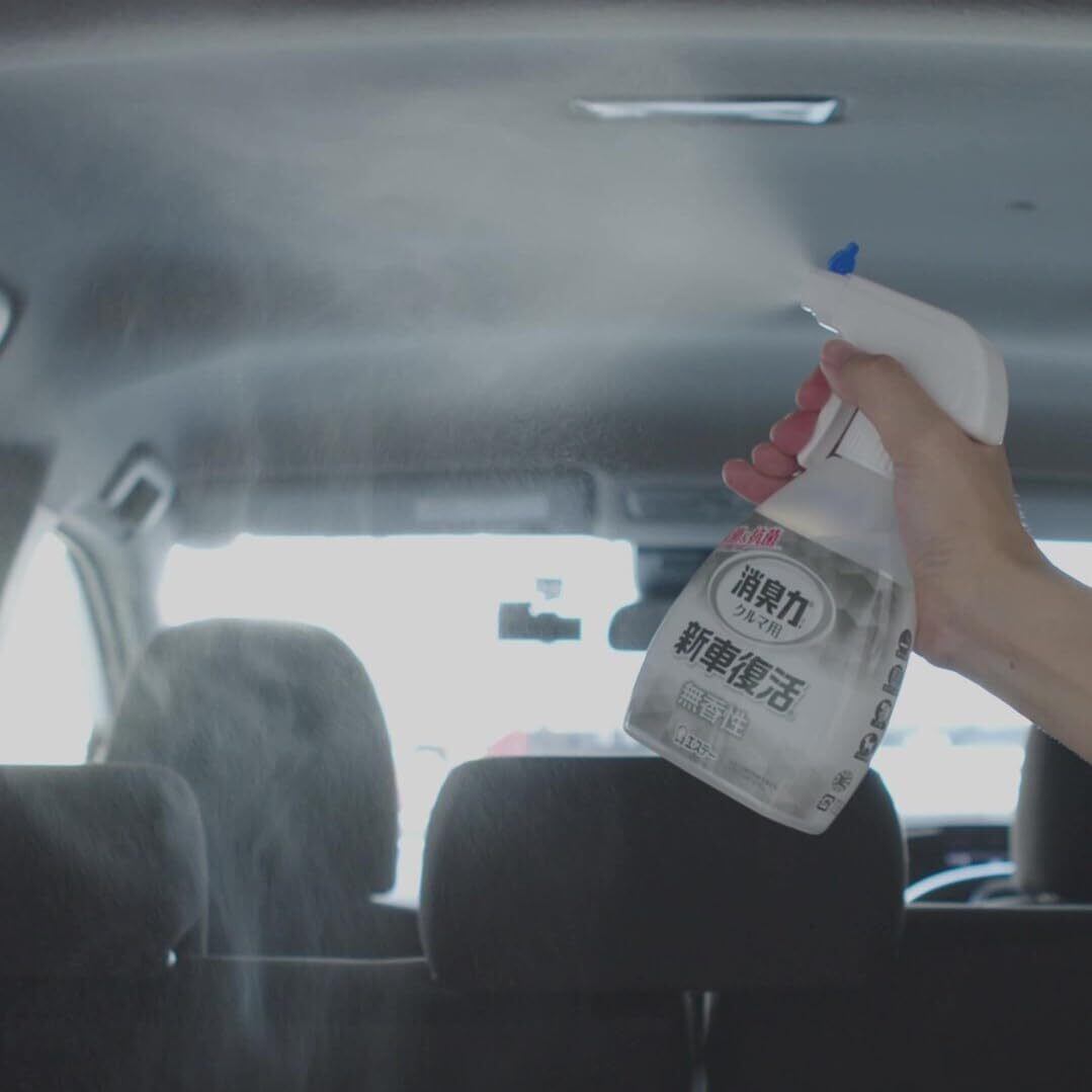 【消臭スプレー】超微細ミストで、シートにしみついたニオイだけでなく空間のニオイもすっきり消臭します。