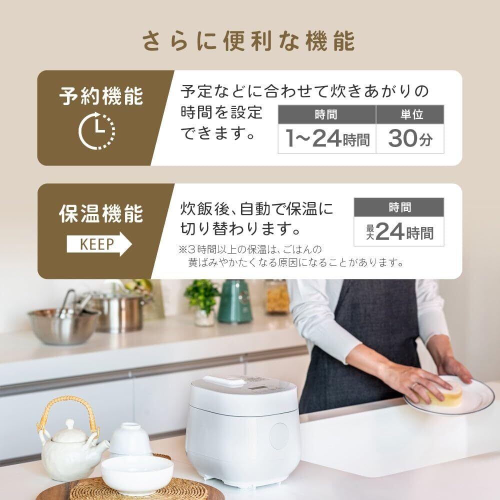 MAXZEN 炊飯器 一人暮らし ひとり暮らし 1人暮らし 無洗米 2合 2.0合 新生活 おしゃれ 二人暮らし 2人暮らし 早炊き ミニライスクッカー フッ素内釜 保温 予約 少量炊き 玄米 二合炊き ミニ キッチン家電 炊飯ジャー ホワイト 白 RC-MX201 マクスゼン