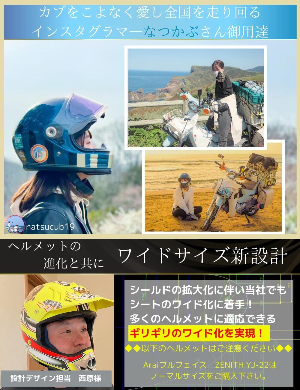 ?【待望のワイドサイズ新登場】お客様の声を反映し、ショウエイ・OGKのフルフェイス、他社のジェットヘルメットに対応したワイドサイズを開発。【※Araiのフルフェイスには貼付けできません。】【※ヤマハ YJシリーズをご使用の方へ】YJシリーズにはノーマルサイズをご使用ください。YJ-20は形状の関係により、本製品の取り付けはできません。