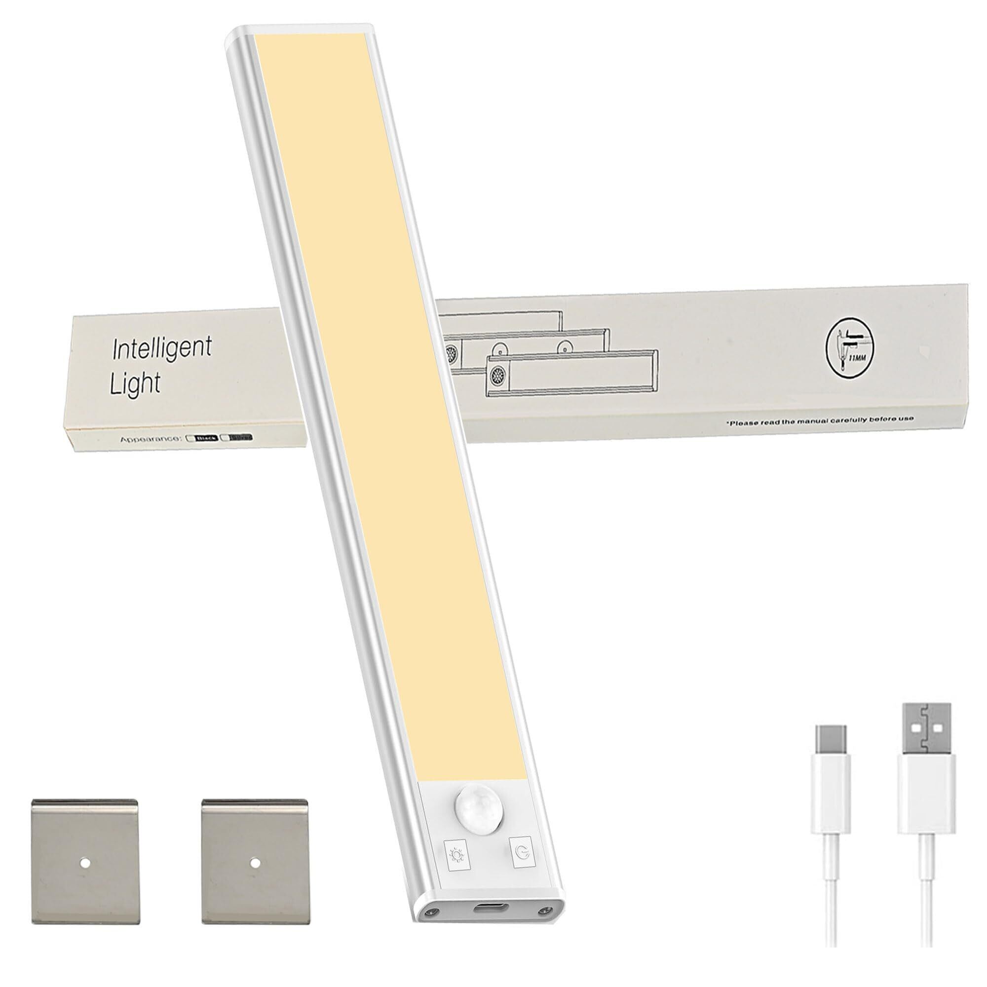 ZHOUMIN 人感センサーライト 室内 充電式 LEDバーライト【無段階調光&高感度センサー / 3色切替 / Type-C充電 / 1500mAH 大容量電池】マグネット式 超薄設計 懐中電灯としても使える クローゼットライト 階段・玄関・キッチン用 昼白色 電球色 昼光色 (30cm)