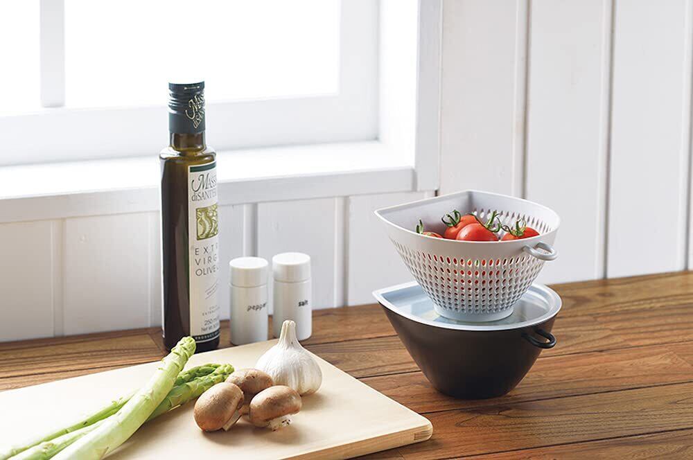 切った食材をサッとすくえて、フタ付きだから積み重ねできる。電子レンジOK
