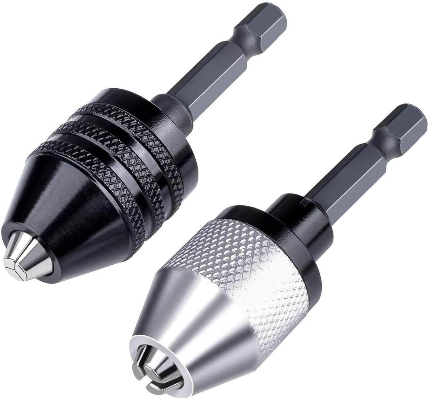 TAORAYO キーレスドリルチャック 2本組 ドリルチャックアダプター キーレス六角軸ドリルチャック キイレスタイプ 六角シャンク クイックチェンジドリルチャック インパクトドライバー対応型 電動ドライバー用 キィレスドリルチャック アダプター ハンマードリル用 全金属タイプドリルチャック キーレスドリルチャックアダプターセット 鉄工錐用 インパクトドライバー用 6.35mm軸 電動工具アクセサリー(0.3~6.5mm,0.3~6.5mm)
