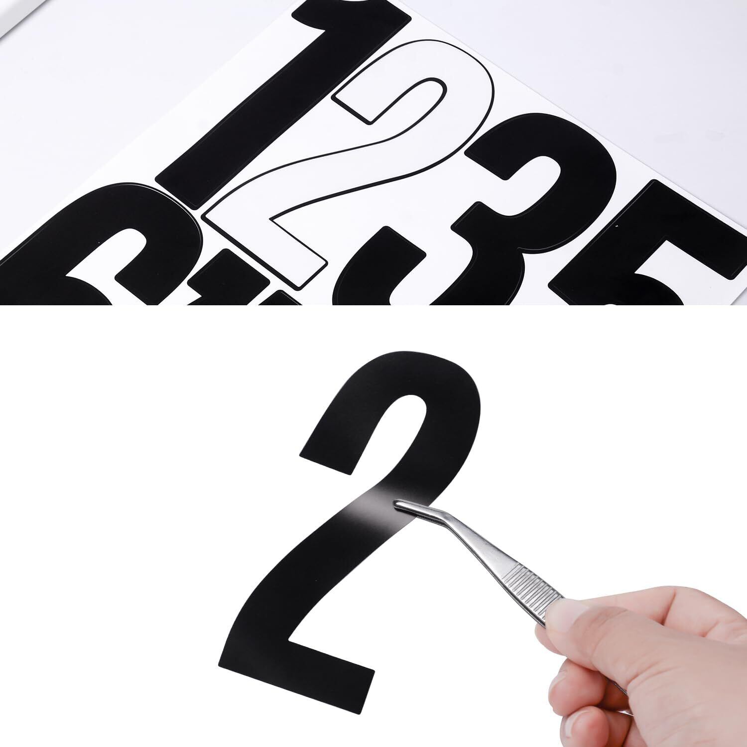 【数字 シール 大きい - デザイン】シールは数字の形に切り抜かれています。簡単に剥がせるタイプで、シンプルなフォントを自由に組み合わせて貼ることができます。