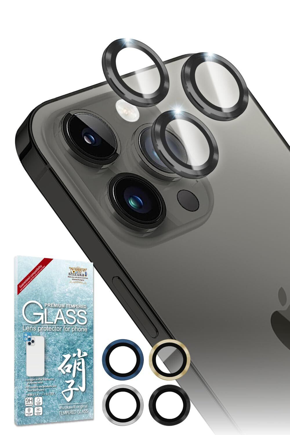 シズカウィル iPhone12 Pro 用 カメラ保護 レンズガード カメラカバー カメラレンズ 強化ガラス 気泡レス 全面保護 保護フィルム フィルム ガラスフィルム レンズ保護 レンズカバー 1個入り ブラック