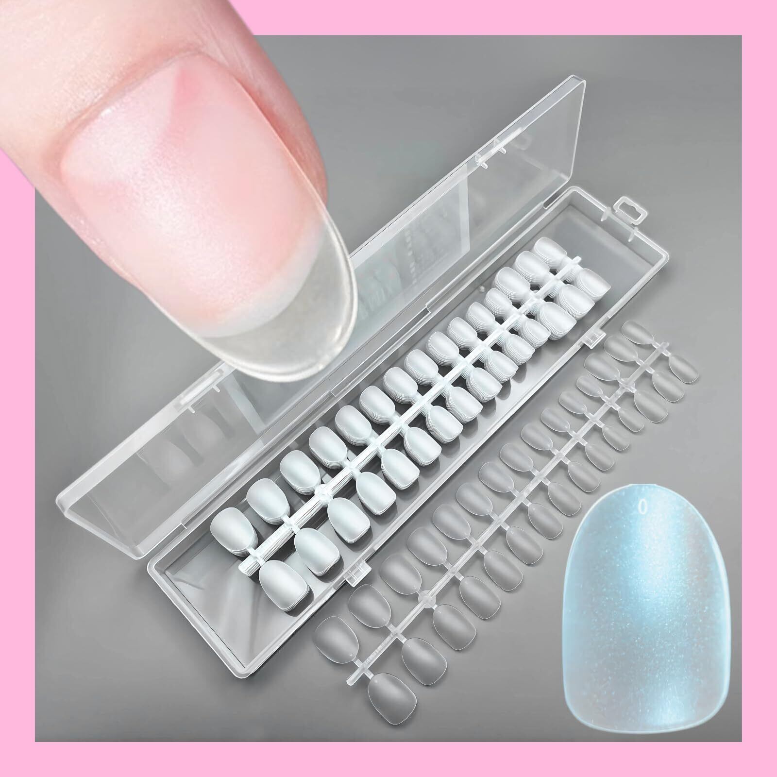 [CHARMIX] ネイルチップ つけ爪 ショート オーバル 初心者にも安心 プロも満足 300枚 大容量 ケース付き 超薄 極薄 薄型 サンディング済み クリア 高耐久 業務用 練習用 DIY用 セルフネイル (003.ショートオーバル 300pcs)