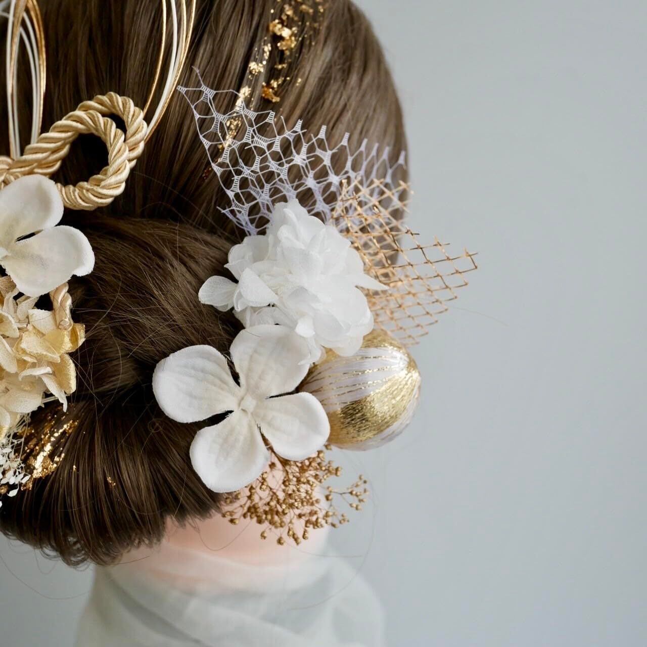 【在庫セール】Lomeri ロメリ【11色展開】髪飾り 水引 金箔 ドライフラワー 成人式 卒業式 結婚式 和装 (白ゴールド)S2