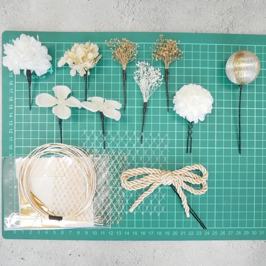 Lomeri ロメリ【11色展開】髪飾り 水引 金箔 ドライフラワー 成人式 卒業式 結婚式 和装 (白ゴールド)S2